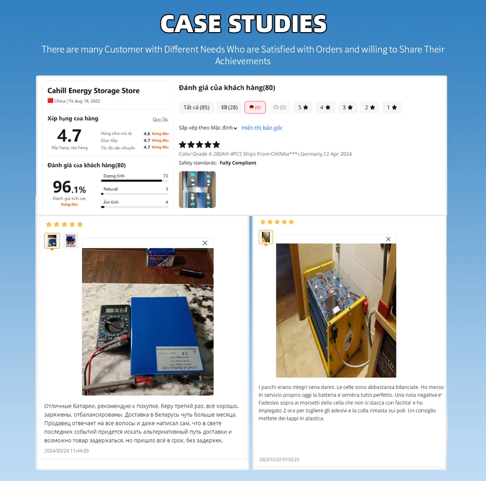– Grade A quality with 320 Ah capacity per cell ensures robust and consistent energy storage.