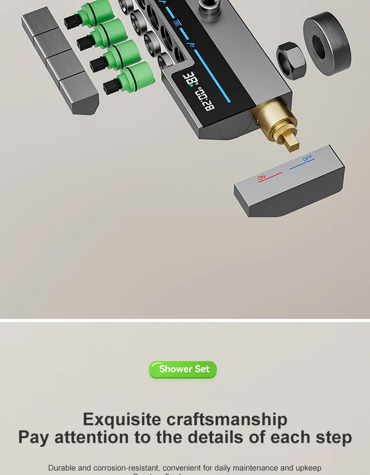 This premium shower system is constructed from high-grade, corrosion-resistant materials to guarantee durability and a pristine appearance for years to come. The digital display is powered by a low-voltage system, ensuring safety and energy efficiency. For optimal performance and longevity, regular cleaning with a soft, damp cloth is recommended. Avoid abrasive cleaners to maintain the integrity of the finish. This product ships from CHINA, uzbekistan, and is a part of our Bathroom and Beauty, KATEGORIA – Regular collection, designed to bring exceptional quality and style to your home.