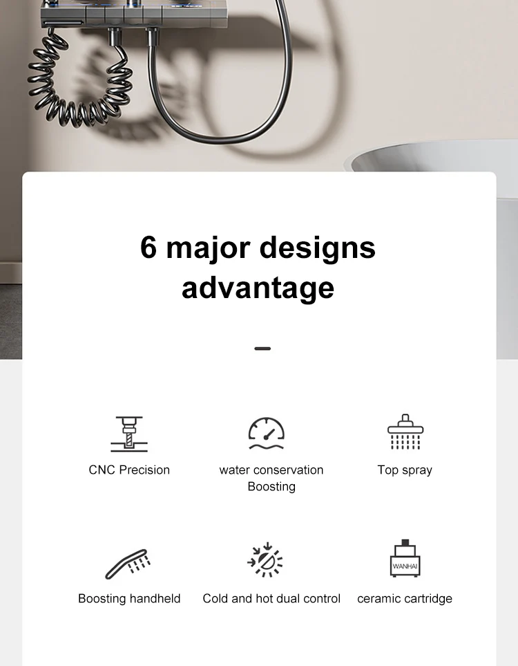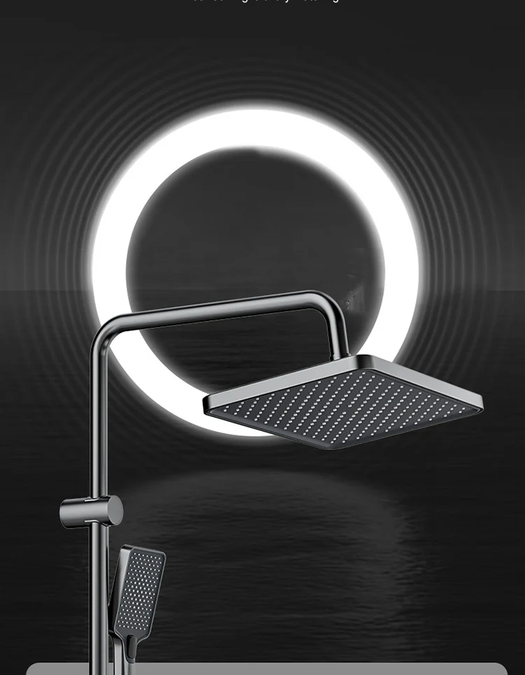 This comprehensive shower system is more than just a faucet; it’s an immersive sensory journey. The intuitive digital display allows for precise control over water temperature and flow, ensuring your perfect shower every time. The ambient lighting feature adds a unique, mood-enhancing dimension, allowing you to customize your bathing atmosphere. Imagine stepping into a shower that not only cleanses but also rejuvenates your senses, setting the tone for your day or unwinding after a long one.