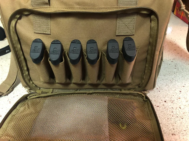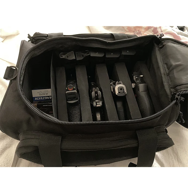 – Spacious interior compartments and secure closures to safely store pistols, tools, and shooting accessories