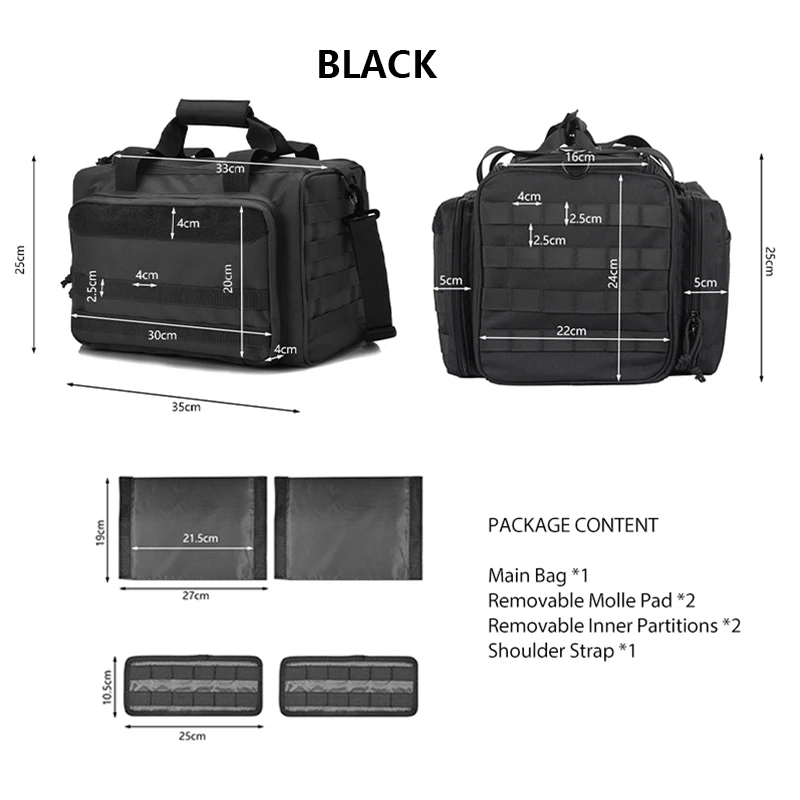 This storage bag streamlines your range or hunting experience by keeping all essential tools and firearms within easy reach and well-protected. Its rugged construction ensures that your equipment stays safe from environmental elements and accidental damage. The Molle-compatible design allows customization, enabling you to tailor your carry setup to specific mission needs or personal preferences. Whether you are heading to the shooting range, on a hunting trip, or engaged in tactical training, this bag provides convenience, reliability, and professionalism.