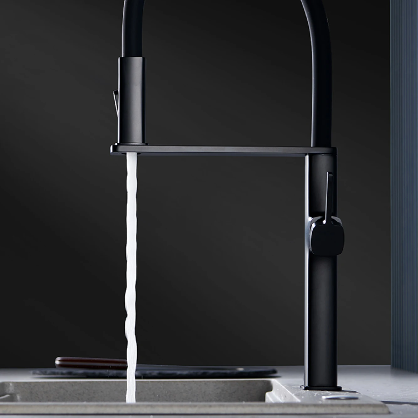 S0ff8cfe3c2d74f40b8c04c33f347231cU.webpHigh end black brass kitchen faucet magnetic suction design 2 function single handle cold and hot dual control sink faucet