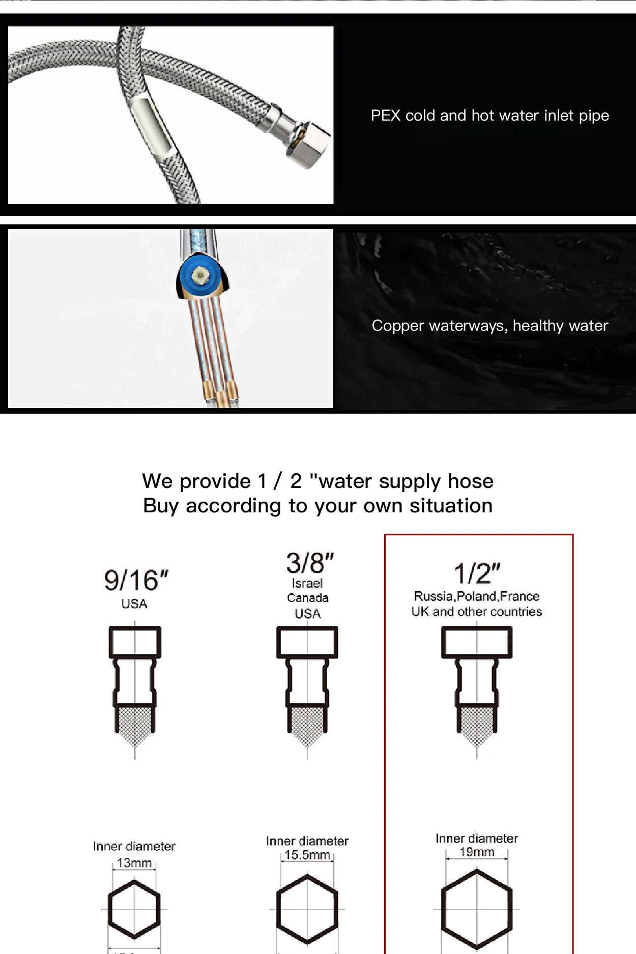 • Versatile Pipe Sizing: Offered with G9/16, G3/8, and G1/2 pipe size options to ensure compatibility with a wide array of plumbing setups.