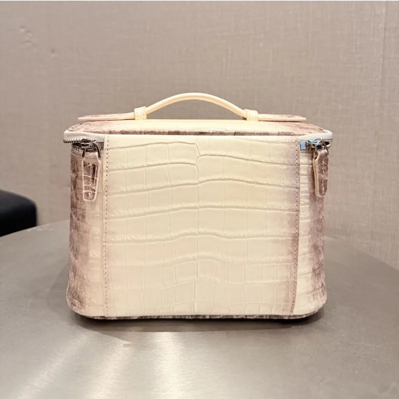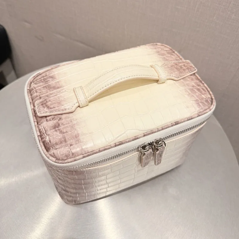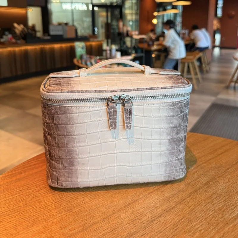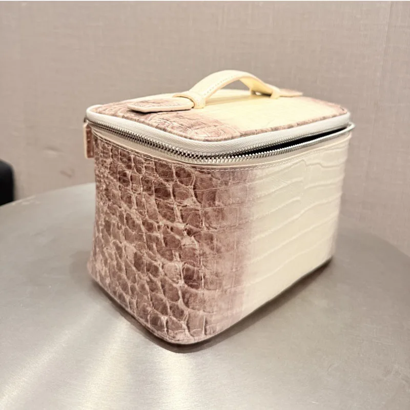 High Quality Crocodile Patterned Top Layer Cowhide Makeup Bag for Women’s Travel
