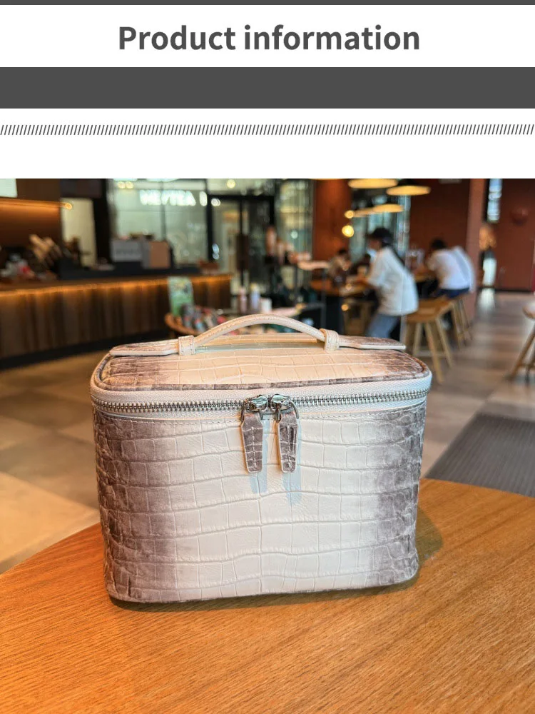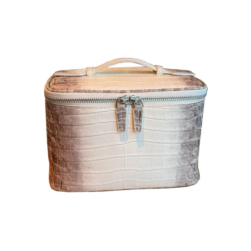 Discover the perfect blend of style and functionality with our high quality crocodile patterned top layer cowhide makeup bag. Designed specifically for women on the go, this portable toiletry bag offers a sophisticated solution for organizing your cosmetics and personal care essentials during travel or daily use. Its refined appearance and durable construction make it an indispensable accessory for fashion-conscious individuals.