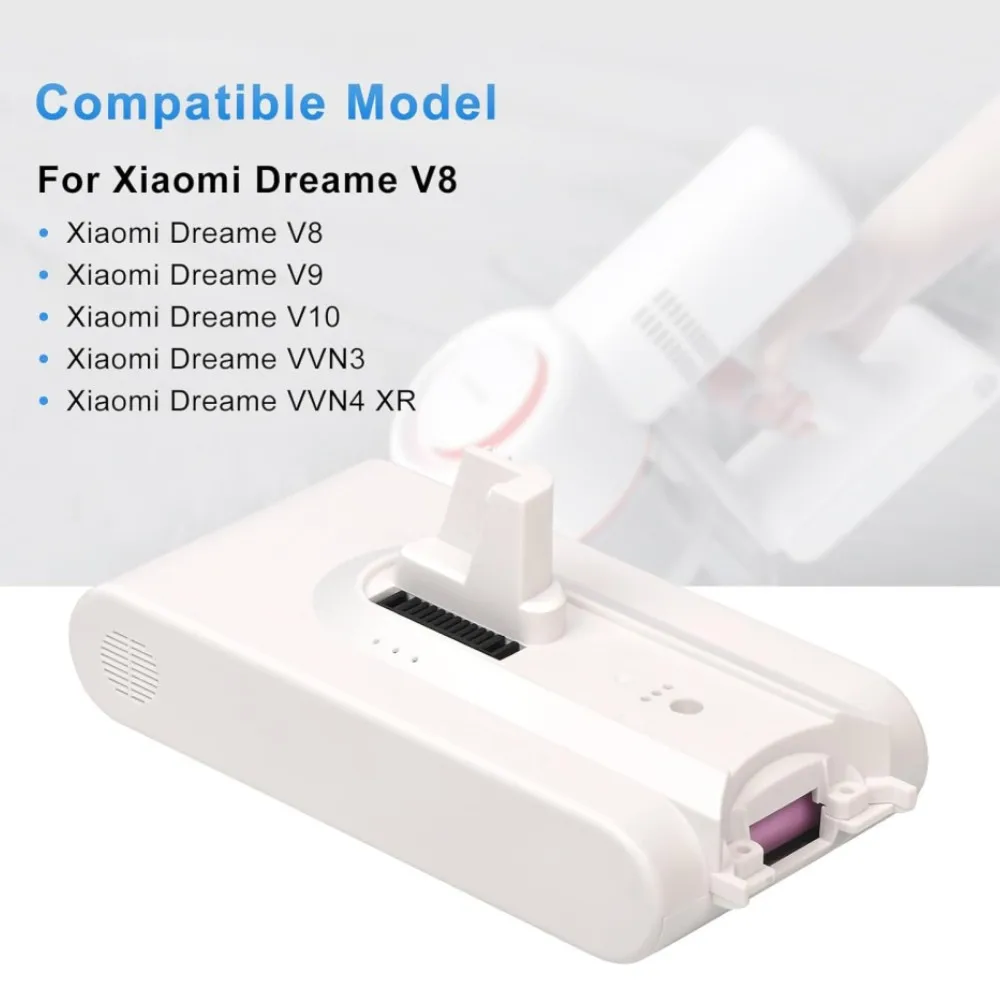 Introducing the High-quality Lithium Battery designed specifically for Dreame handheld cordless vacuum cleaners, including models V8, V9, V9 P, V10, XR, VVN3, and VVN4. This premium replacement battery ensures your vacuum cleaner continues to deliver optimal performance, helping you maintain a spotless home without interruption.