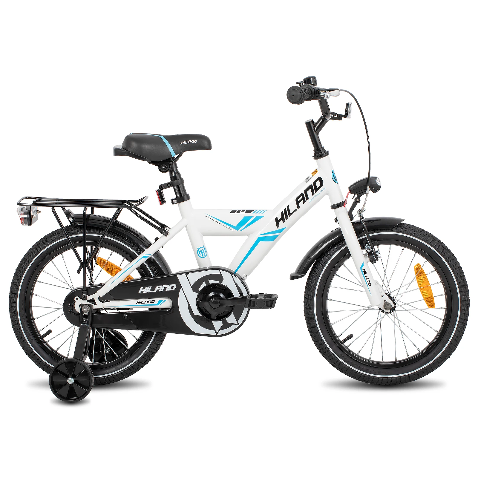 Hiland 16/18 Zoll Kinderfahrrad bietet sicheren Fahrspaß für Jungen von 4-7 Jahren. Ausgestattet mit Rücksitz, Gepäckträger, Stützrädern, Handbremse und Rücktrittbremse. Robust, komfortabel und ideal für erste Abenteuer. Versand aus Deutschland.
