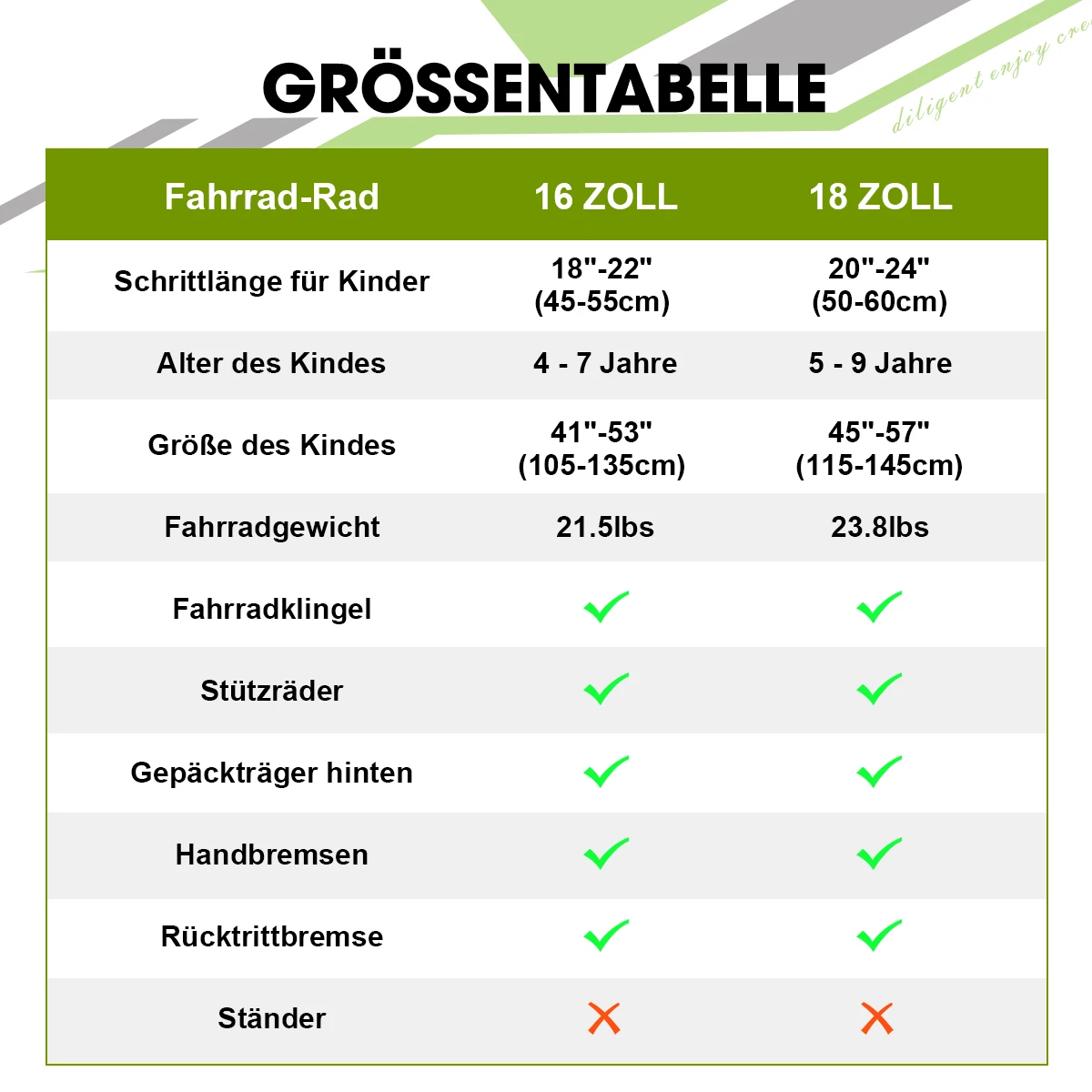 - Größenoptionen 16 und 18 Zoll passend für verschiedene Altersstufen und Körpergrößen