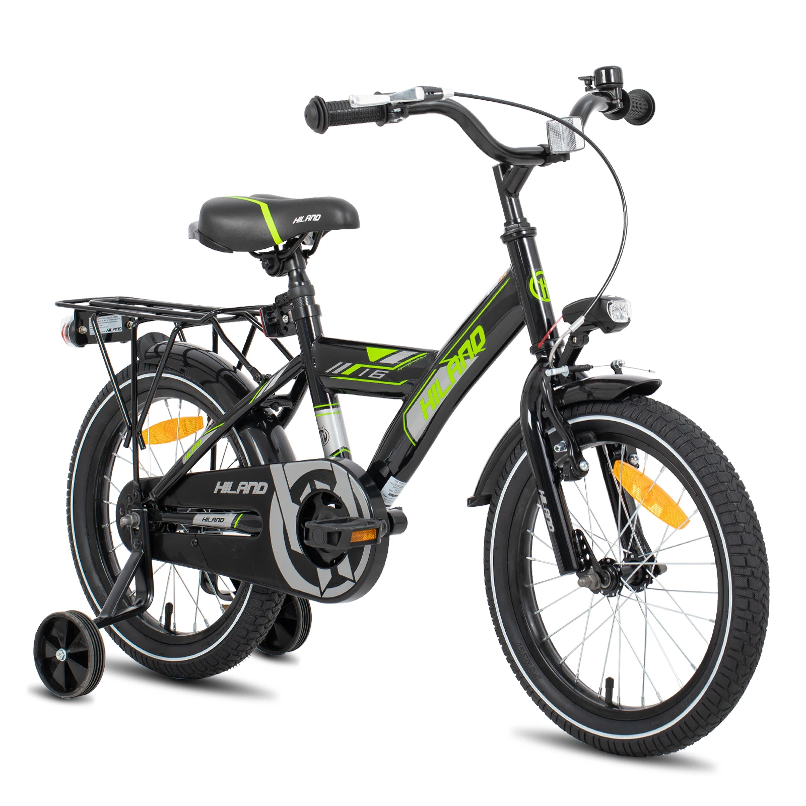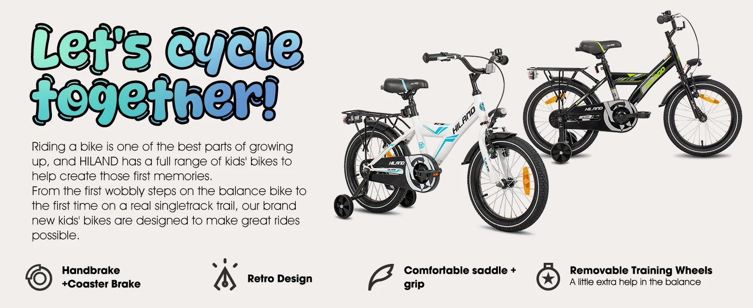 Das Hiland Kinderfahrrad unterstützt junge Fahrer dabei, Vertrauen und Fahrfähigkeiten zu entwickeln. Die Stützräder erleichtern den Übergang vom Laufrad zum Fahrrad, während die kombinierte Bremsanlage aus Hand- und Rücktrittbremse maximale Sicherheit bietet. Der Rücksitz ermöglicht es, kleine Freunde oder Spielzeug mitzunehmen, und der Gepäckträger erweitert die Nutzungsmöglichkeiten, ideal für Ausflüge oder den Kindergarten. Dank des robusten Aufbaus ist das Fahrrad bestens für den täglichen Gebrauch geeignet und wächst mit dem Kind mit.