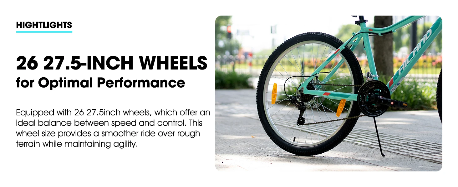HILAND presents a versatile mountain bike specifically engineered for women and girls who seek adventure, fitness, and style. Whether you are exploring rugged trails or cruising through city streets, this MTB combines durability, comfort, and responsiveness to elevate your cycling experience. Available in vibrant green and purple colors, and offering two wheel sizes (26 and 27.5 inches), it caters to various preferences and riding styles.