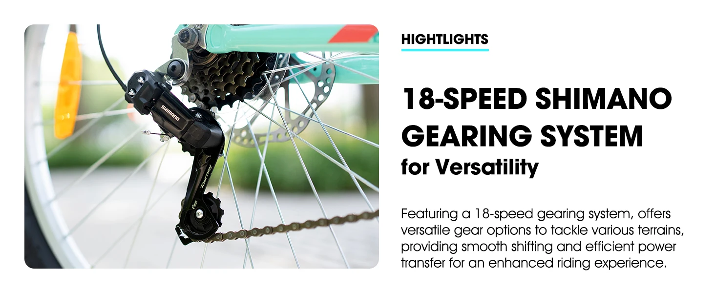 - 21-speed gearing system that allows smooth shifting and adapts to diverse terrains