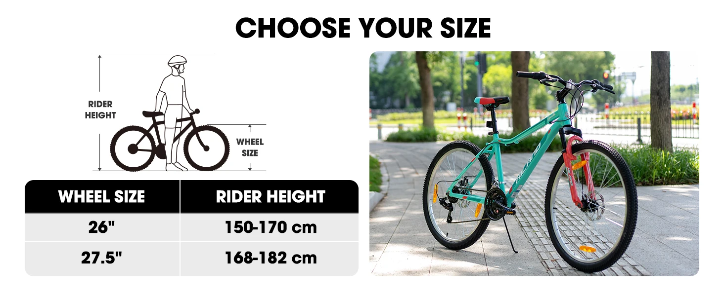 - Two size options: 26 Inch and 27.5 Inch wheels, ensuring a perfect fit for riders of varying heights.