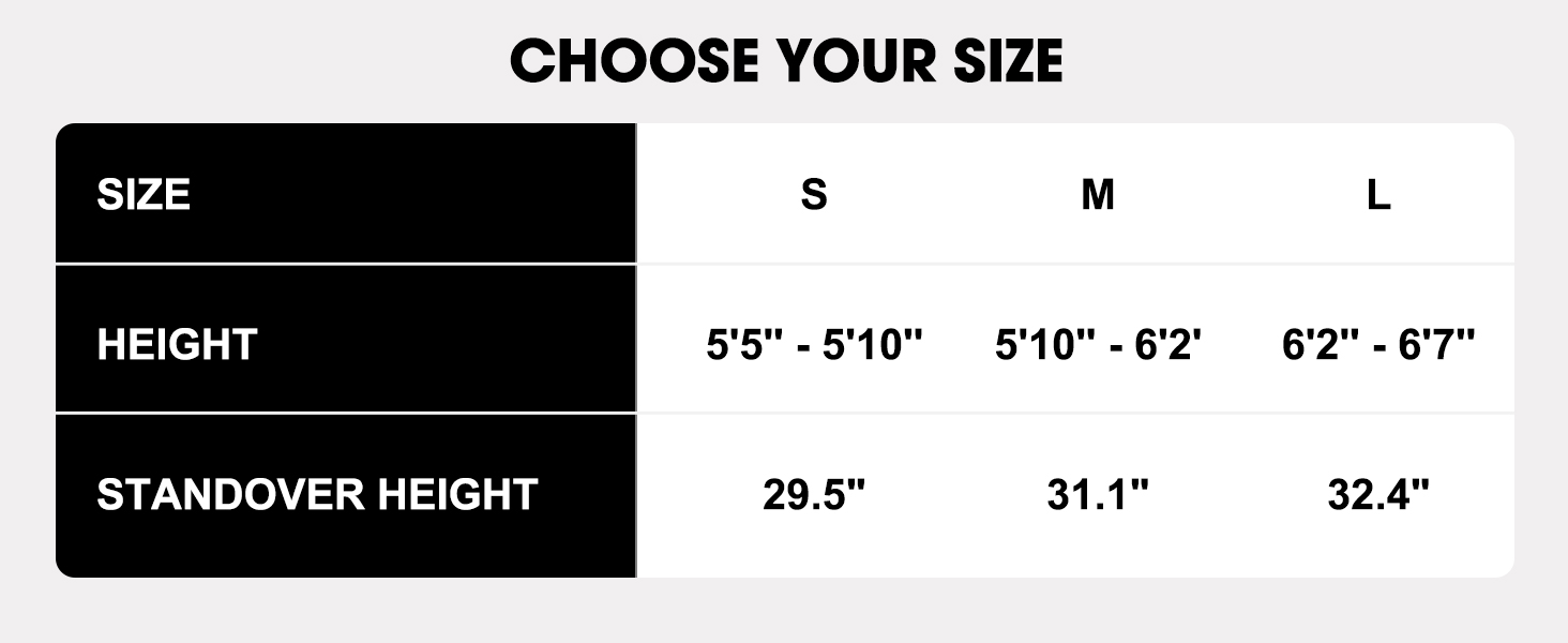 – Available in multiple sizes (S, M, L) to fit riders comfortably