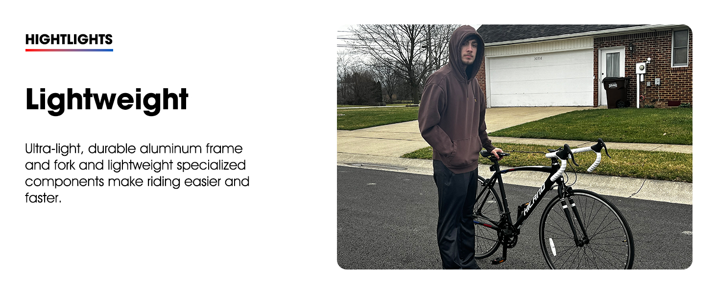 Constructed from high-quality aluminum, the frame promises strength and longevity with minimal maintenance. To preserve its performance and appearance, regular cleaning and occasional lubrication of the drivetrain are recommended. This bike combines advanced engineering with practical design, making it a reliable companion for your cycling adventures. Choose the Hiland 700 C Road Bike to elevate your ride with professional-grade features and a stylish finish.