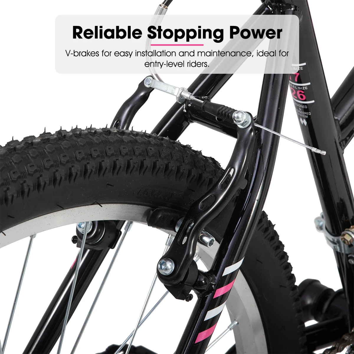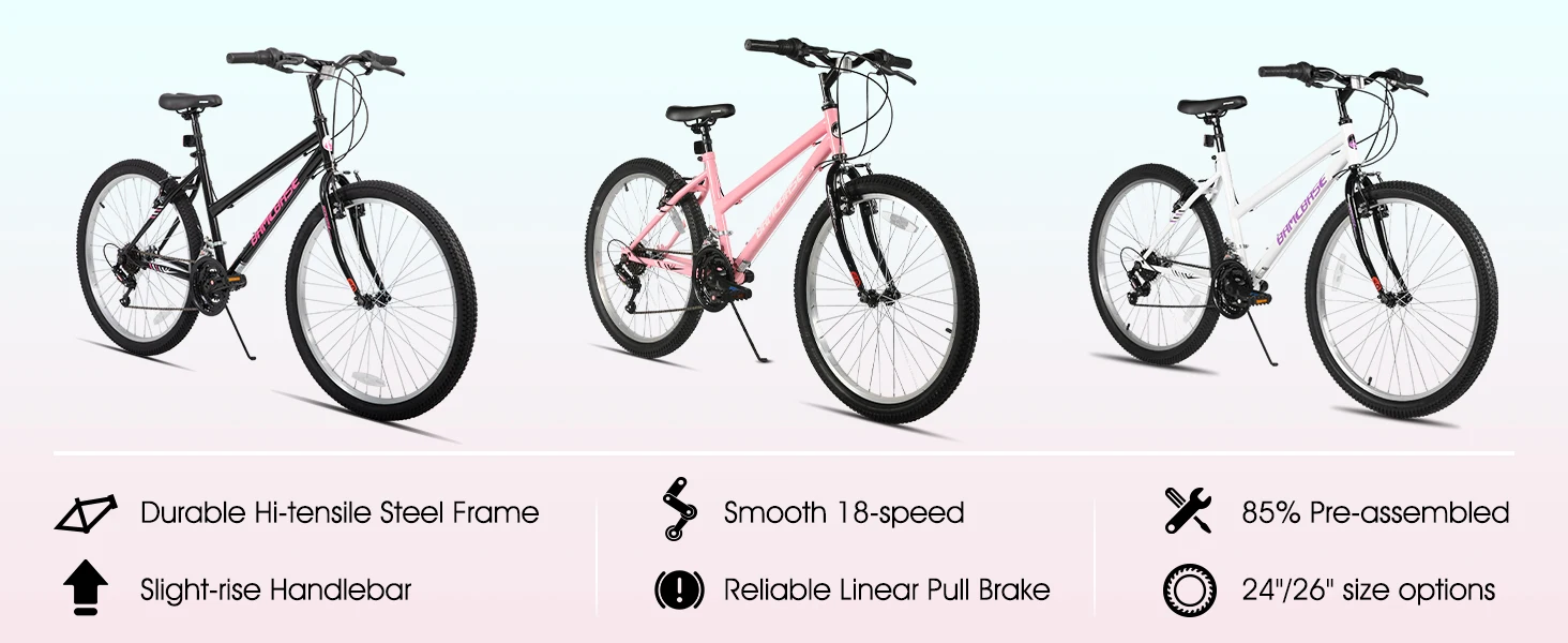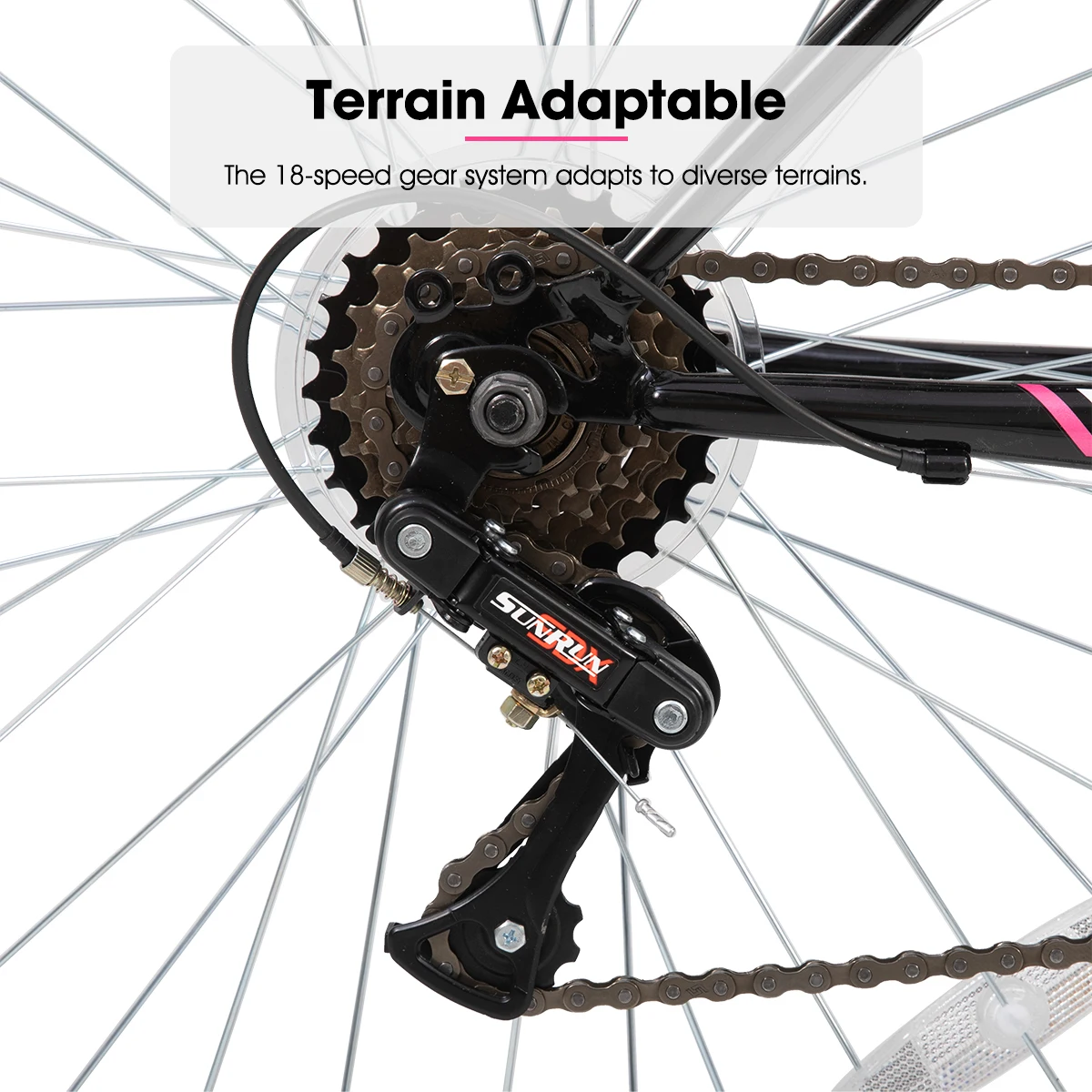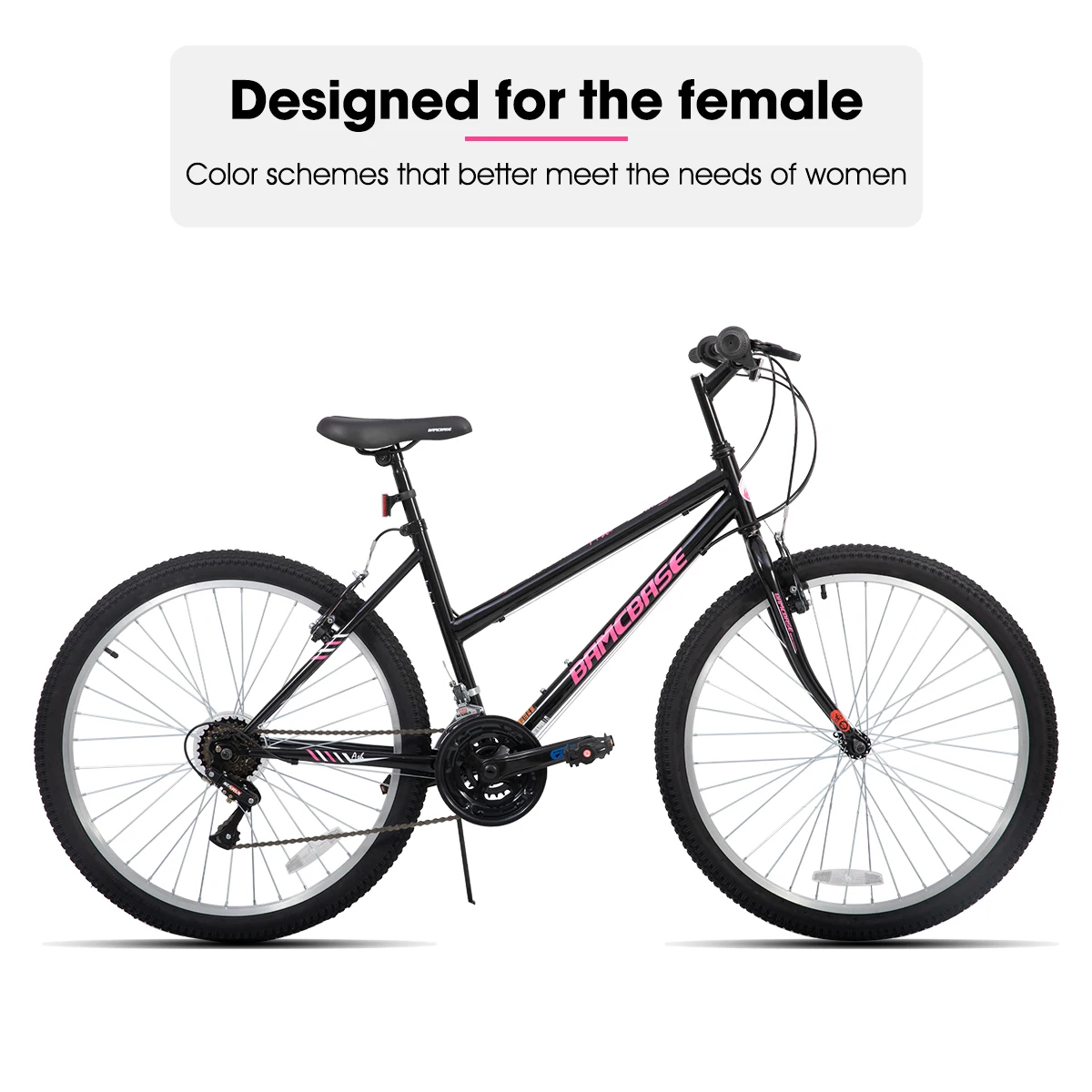 The HILAND Bamcbase Women’s Mountain Bike is engineered to elevate your cycling experience, whether for daily commuting or weekend excursions. Its versatile 18-speed transmission allows effortless transitions between city streets and off-road trails, empowering you to tackle hills and uneven surfaces with confidence. The hardtail suspension absorbs shocks effectively, reducing fatigue and improving handling on rough terrain. Comfortable frame sizing and ergonomic geometry promote an enjoyable ride, helping you stay active and healthy. Its stylish design and multiple color options make it an attractive choice for riders who value both form and function.