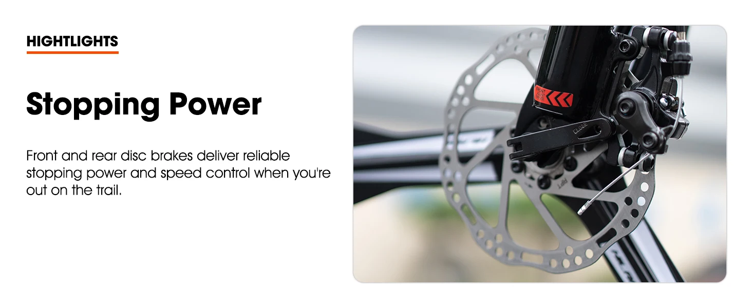 - Reliable disc brakes delivering superior stopping power in all weather conditions