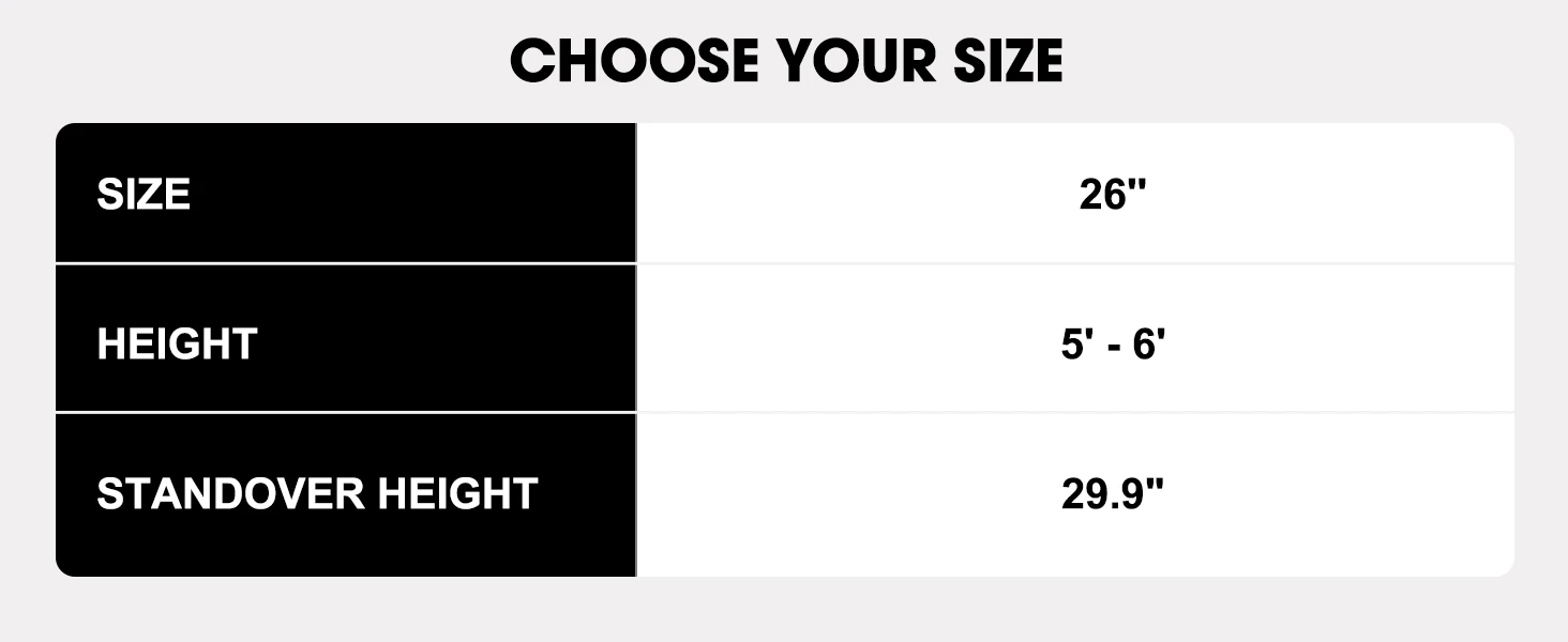 - 26-inch wheels for enhanced stability and smooth rides on rough paths