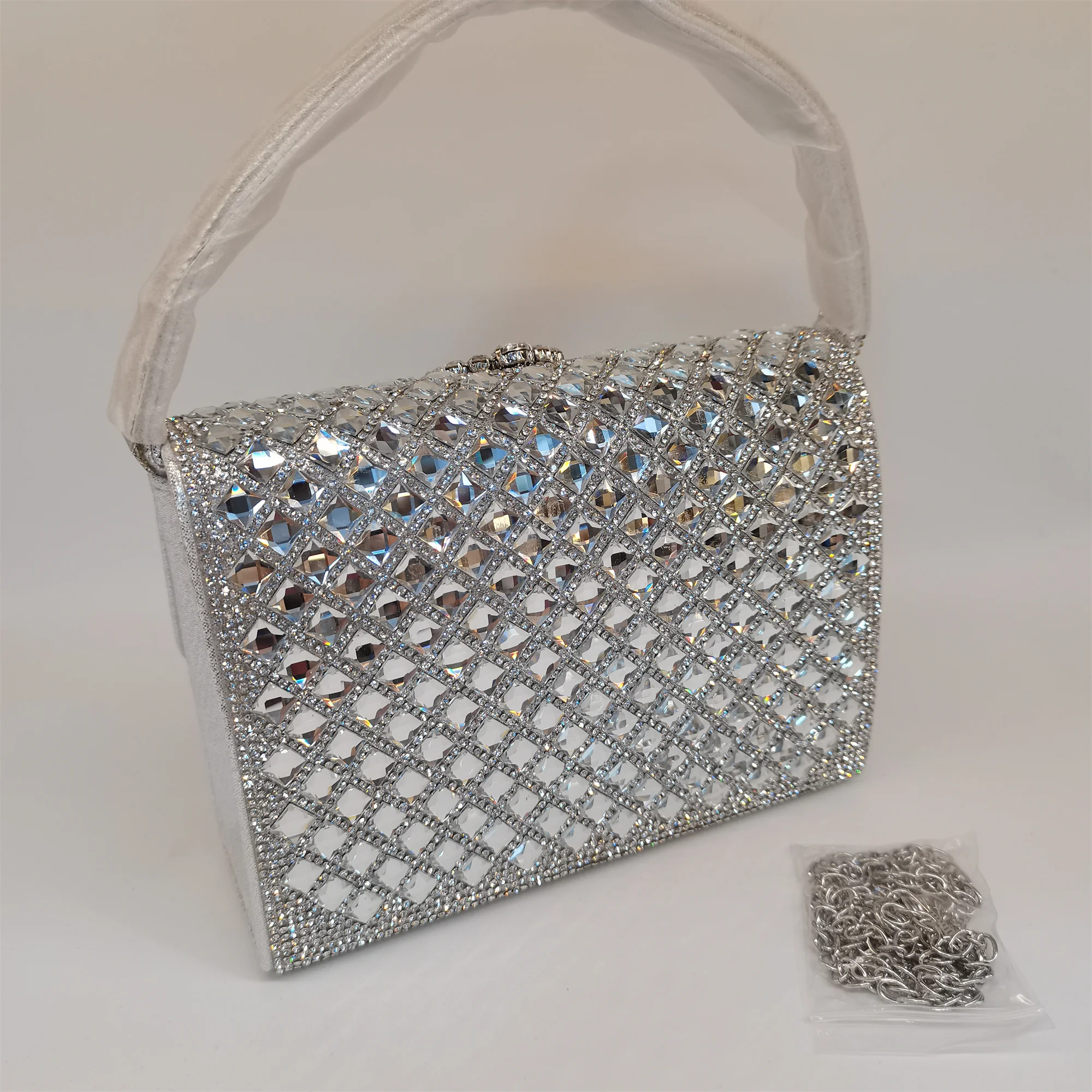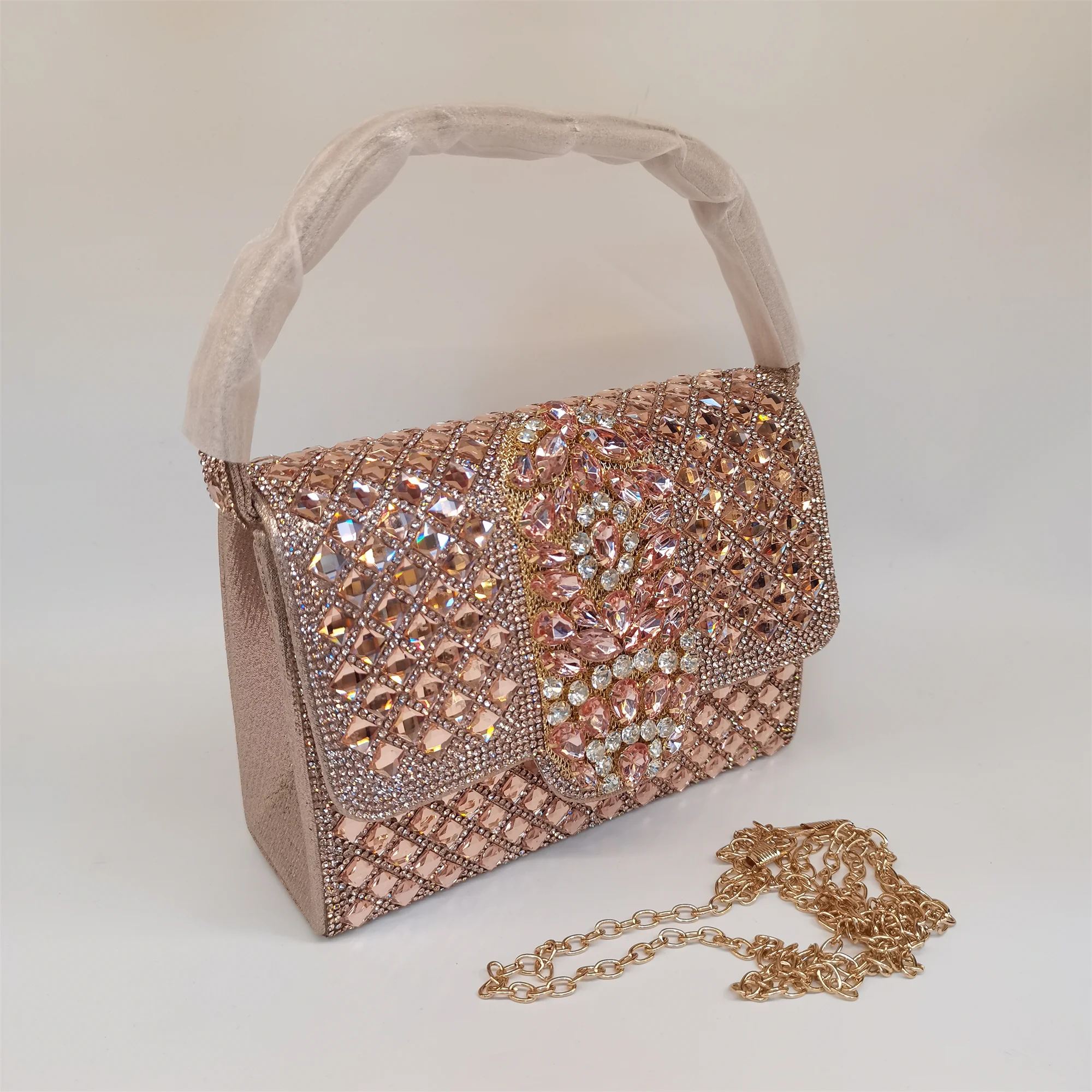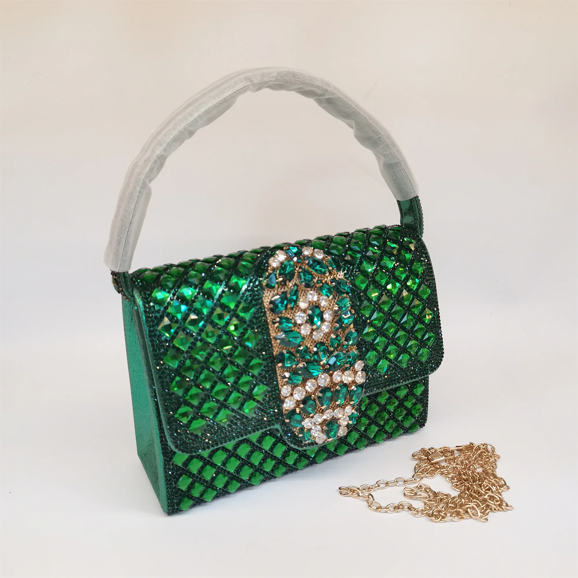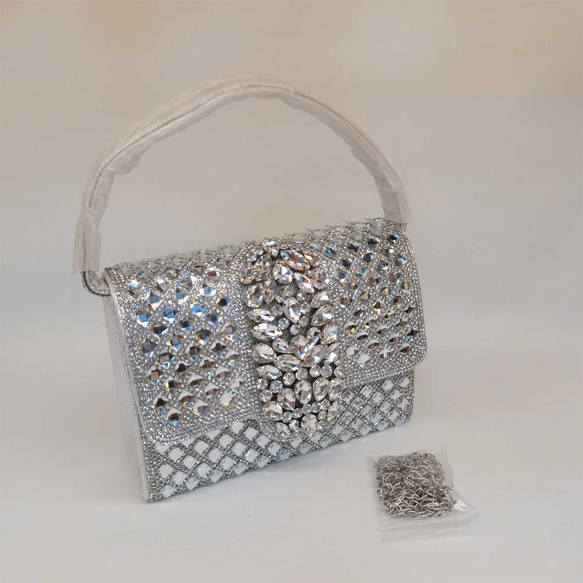 Made with high-quality materials that offer durability and long-lasting shine, this handbag is easy to maintain. To preserve its radiant rhinestone embellishments, gently wipe with a soft cloth and avoid exposure to harsh chemicals. A must-have fashion accessory, this bag seamlessly combines style, convenience, and elegance for your special occasions.