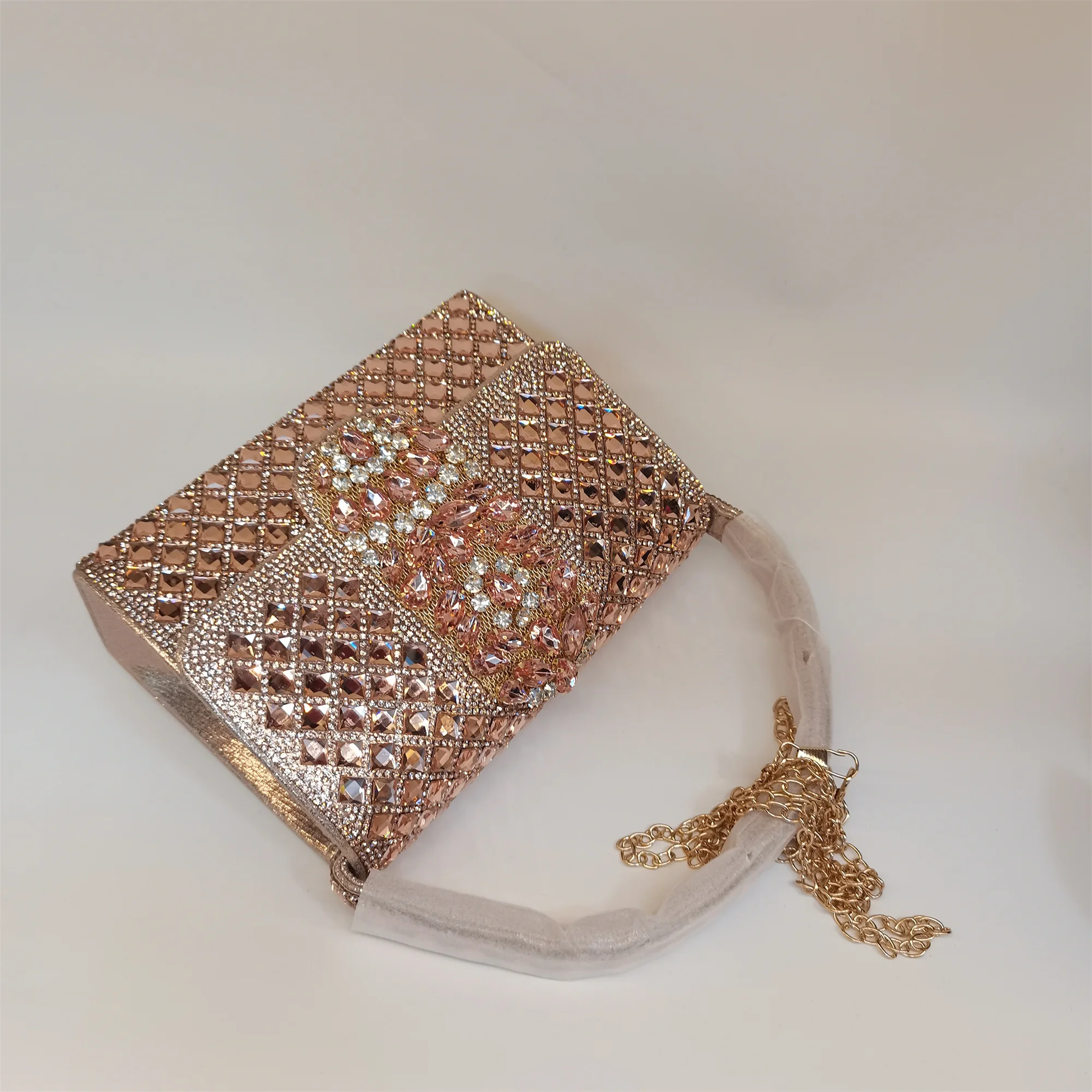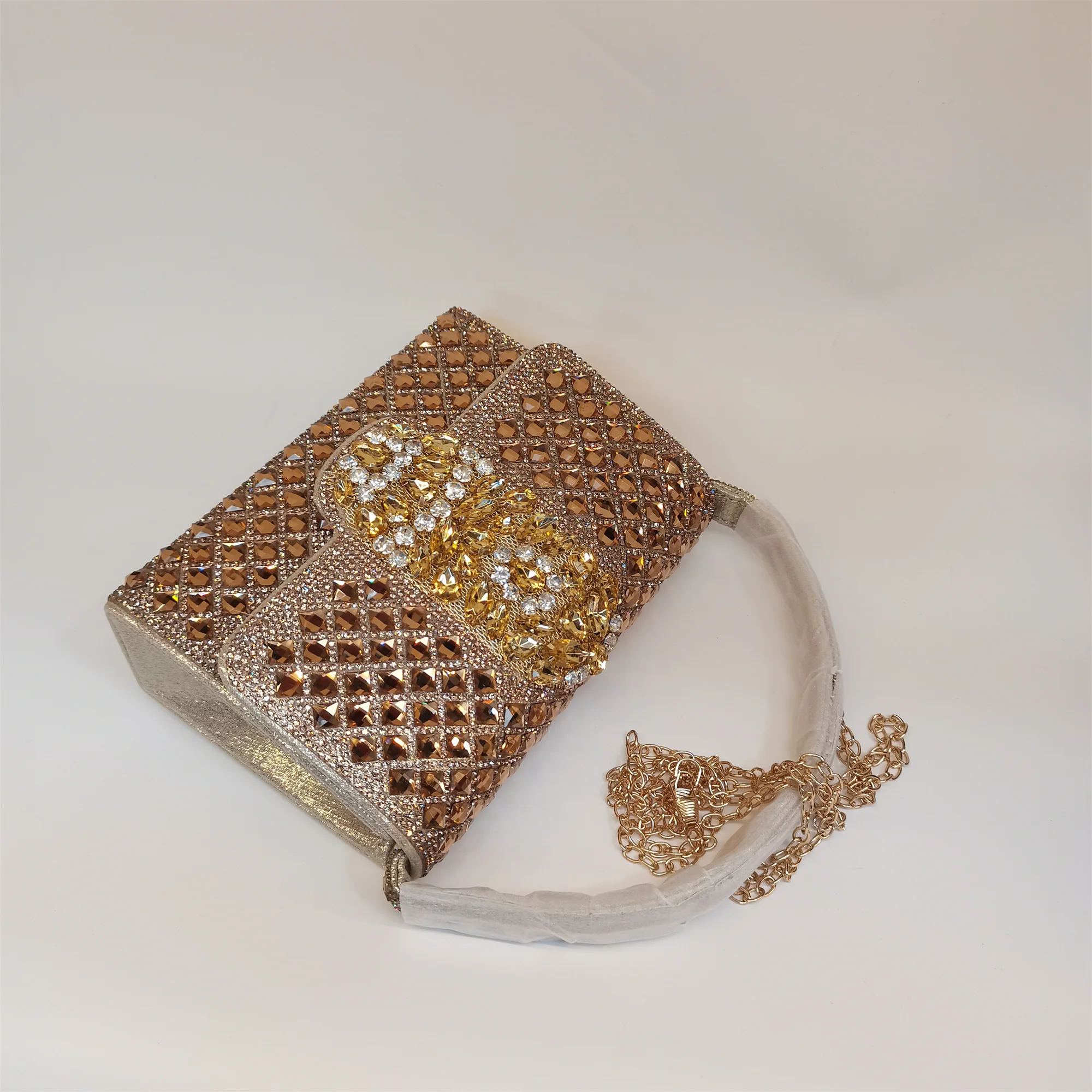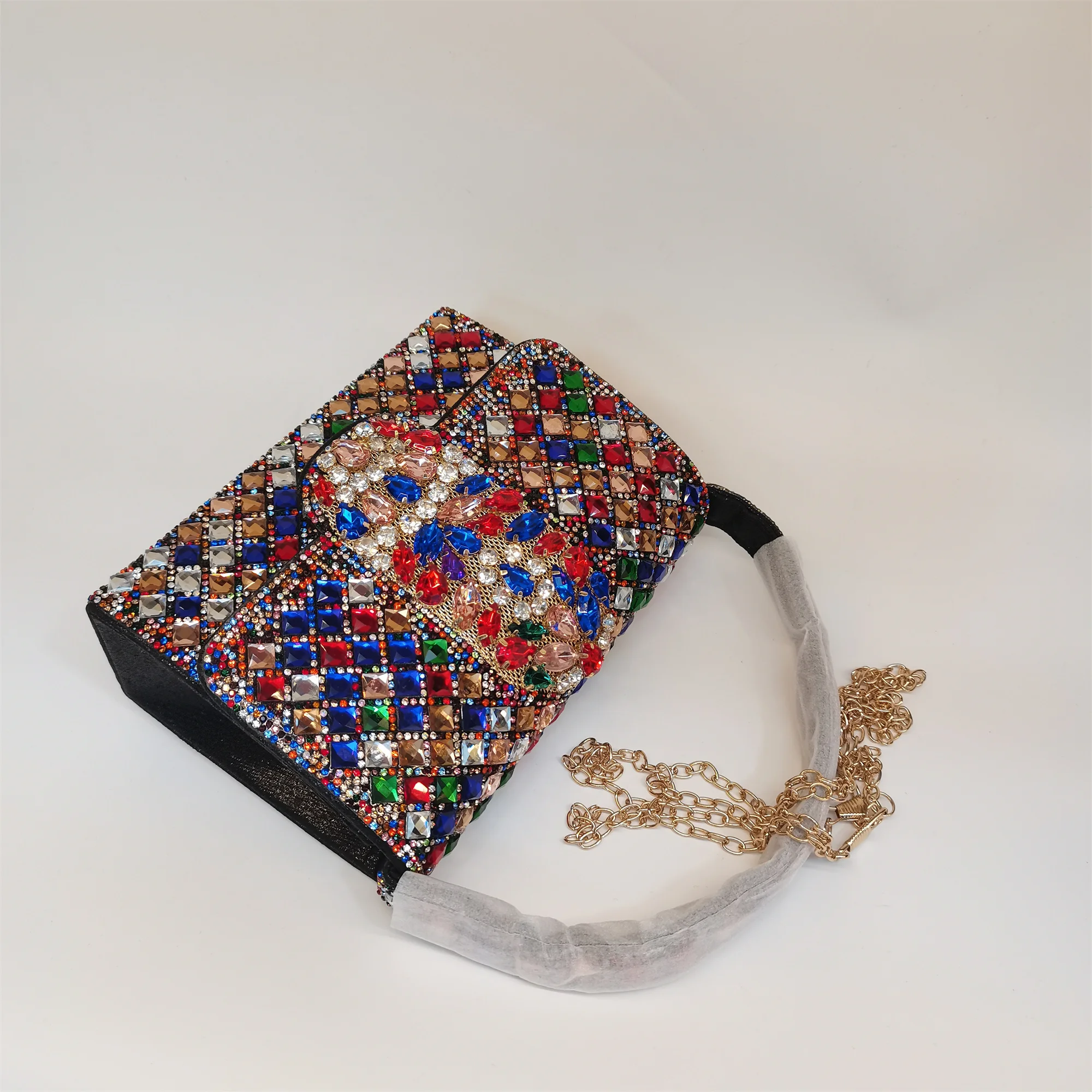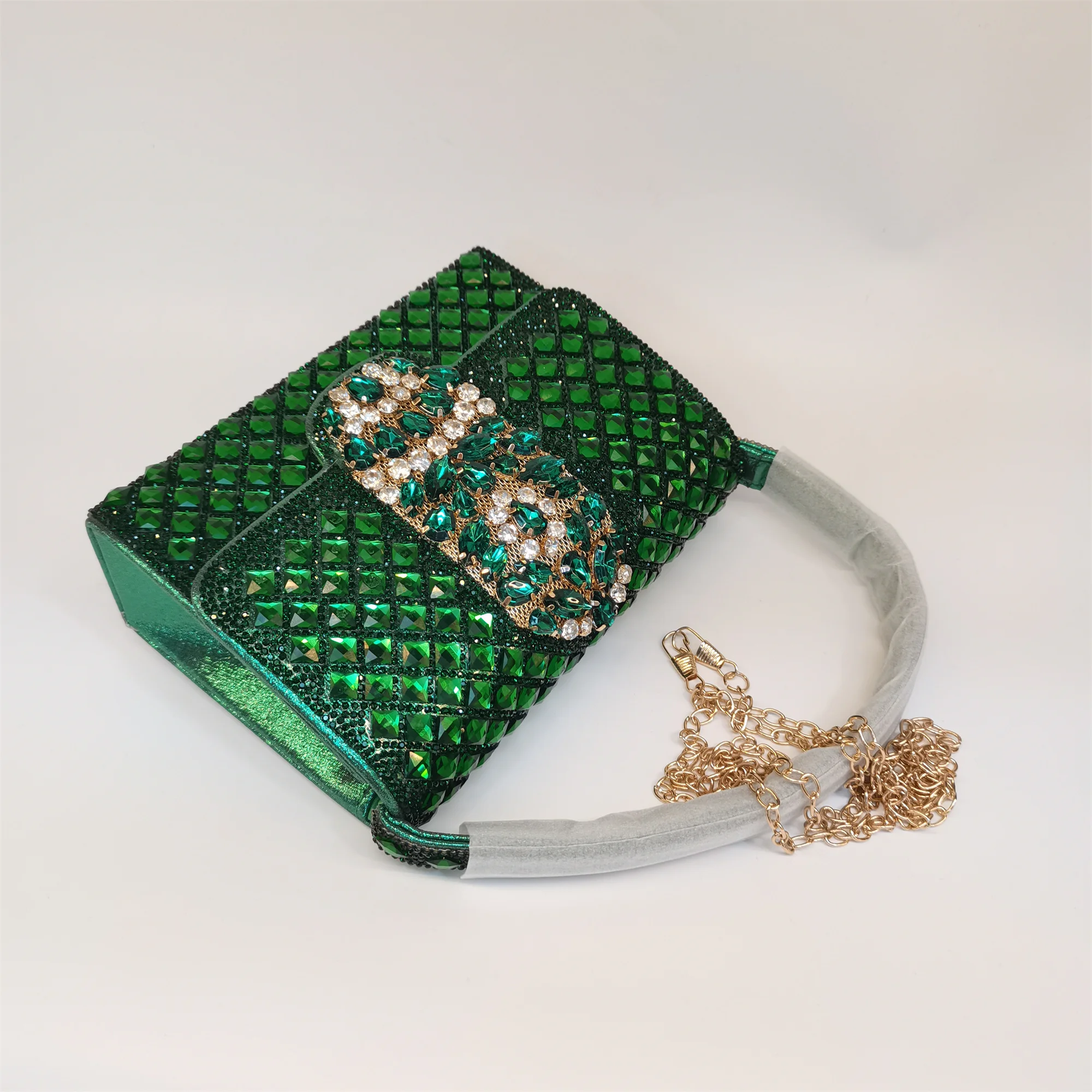 Made with high-quality materials that offer durability and long-lasting shine, this handbag is easy to maintain. To preserve its radiant rhinestone embellishments, gently wipe with a soft cloth and avoid exposure to harsh chemicals. A must-have fashion accessory, this bag seamlessly combines style, convenience, and elegance for your special occasions.