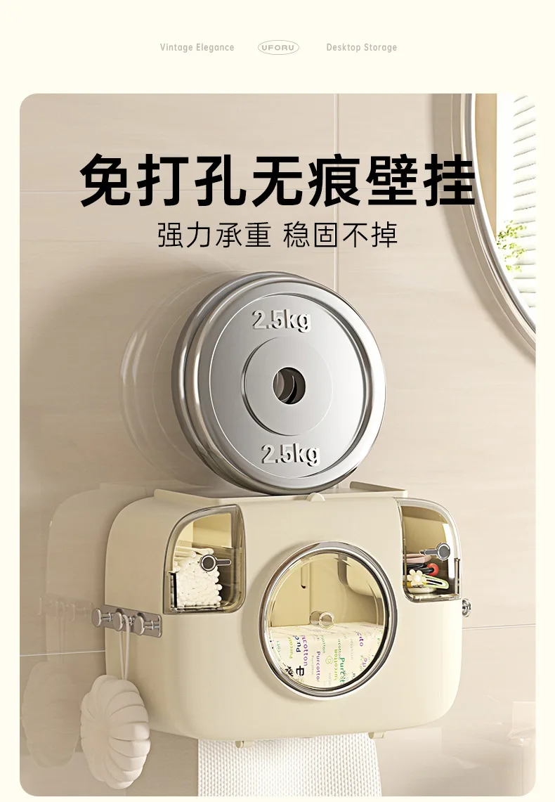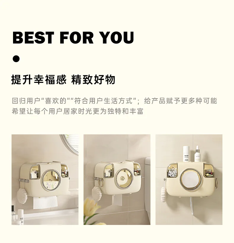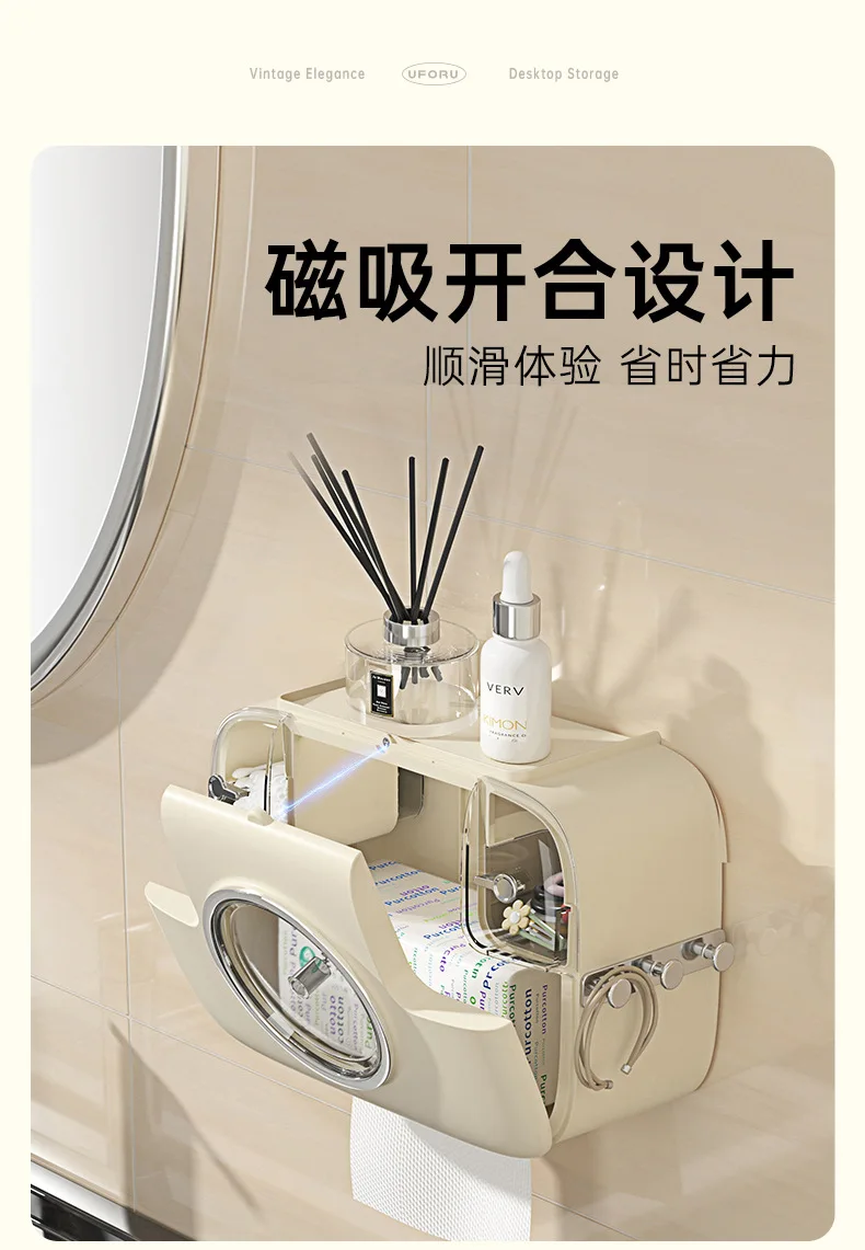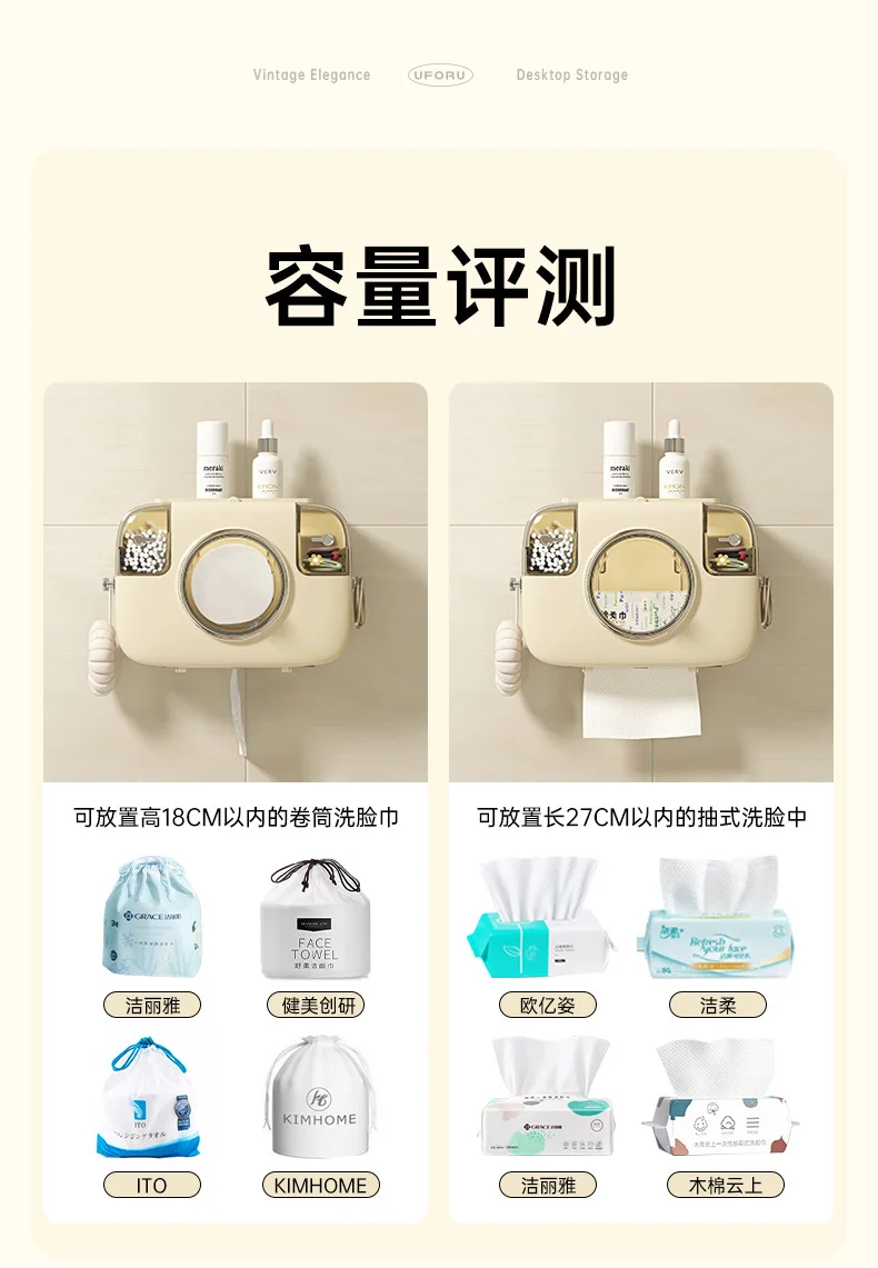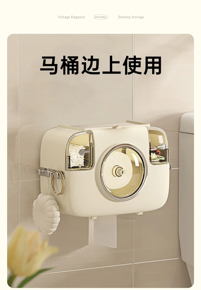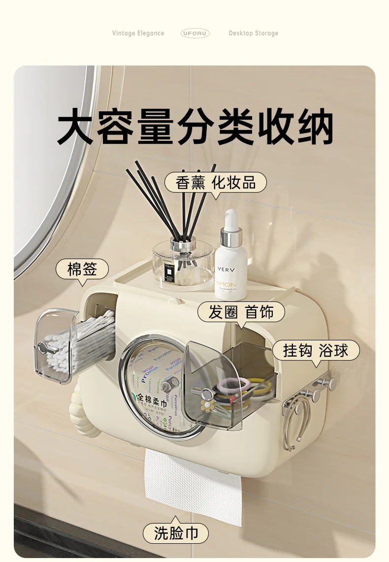 Household Face Towel Storage Box Bathroom Multi-Functional Paper Extraction Box Cream Wind Punch-Free Wall Hanging Waterproof