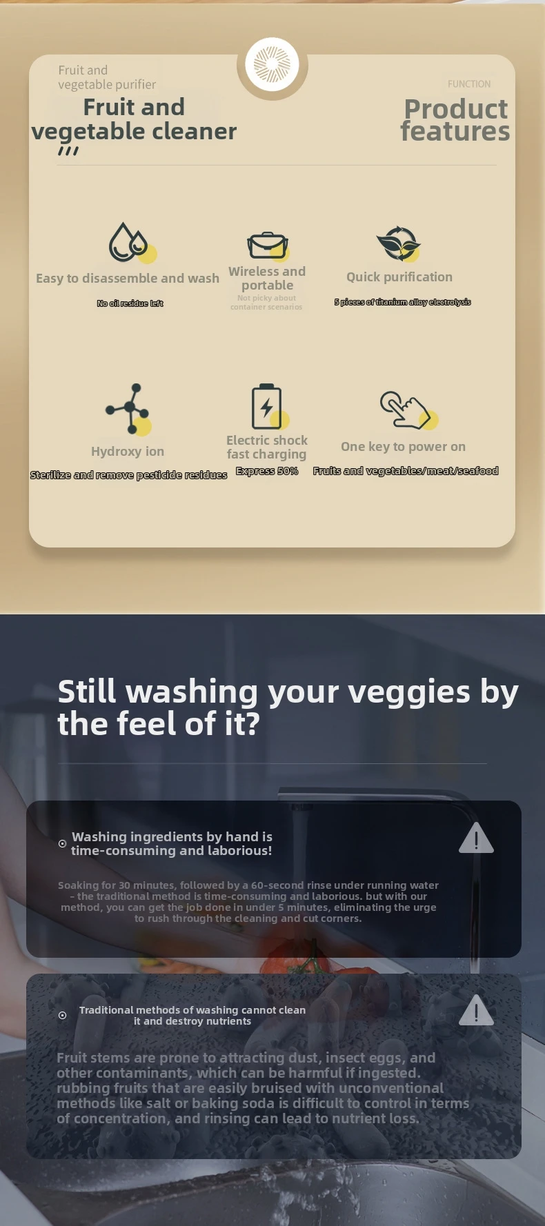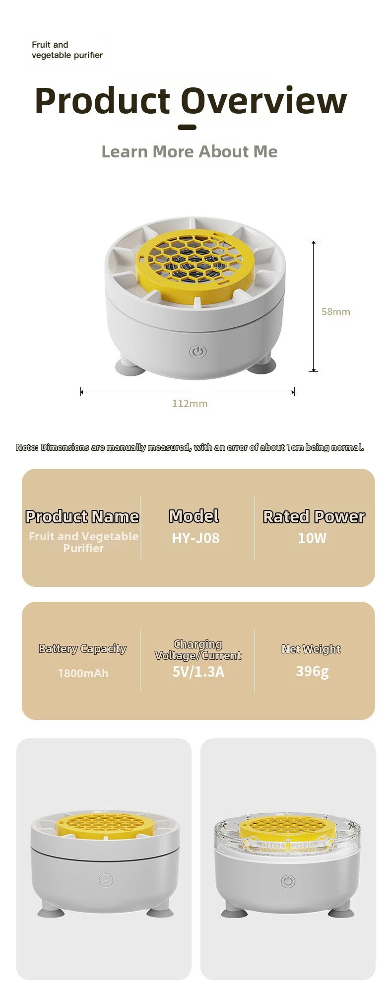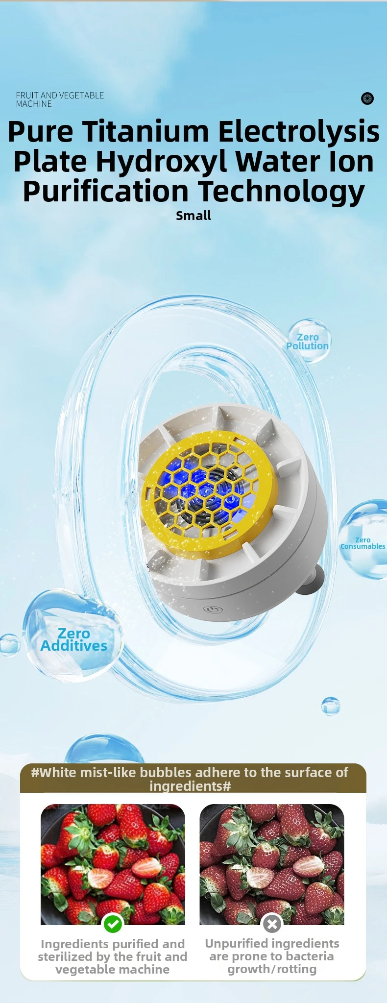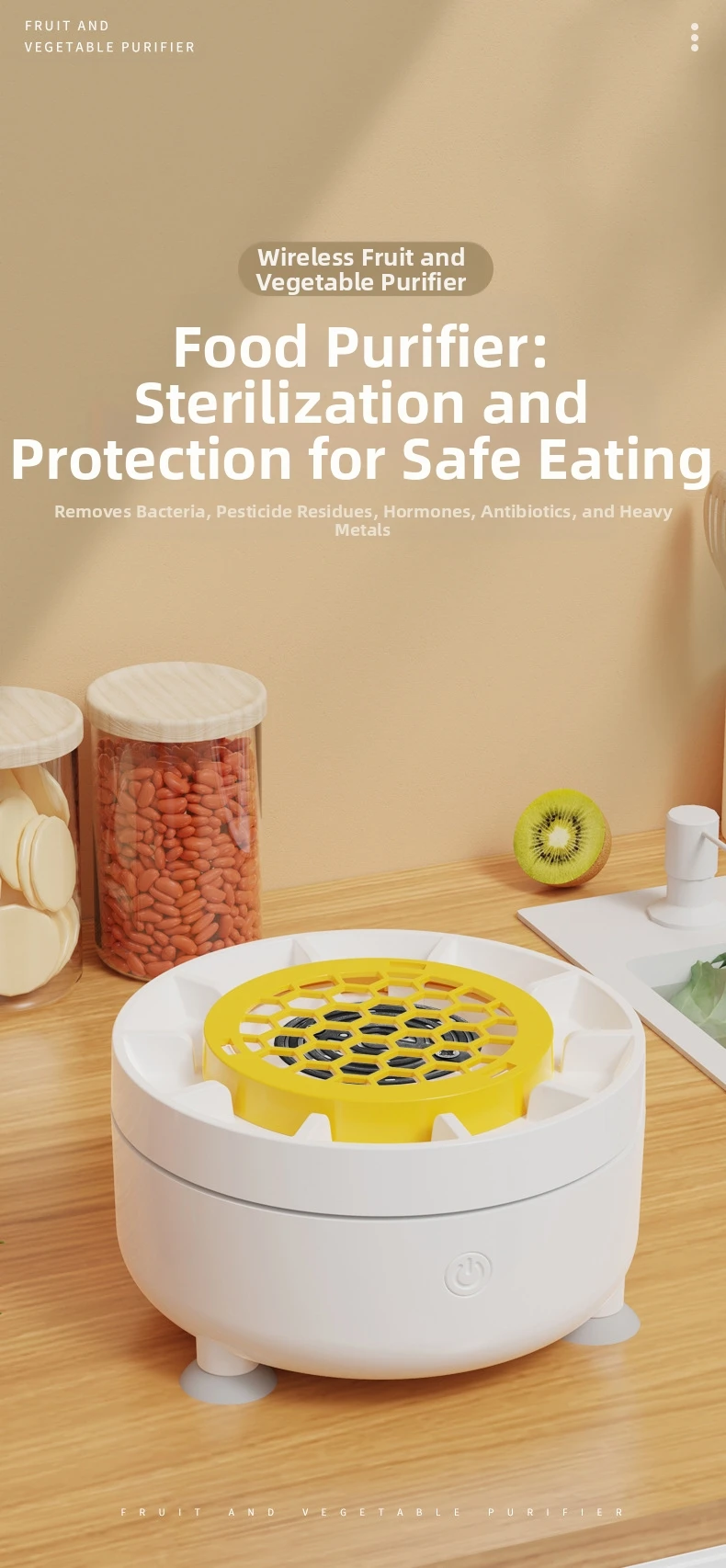 – Advanced Purification Technology: Effectively eliminates up to 99% of harmful substances from your produce.
