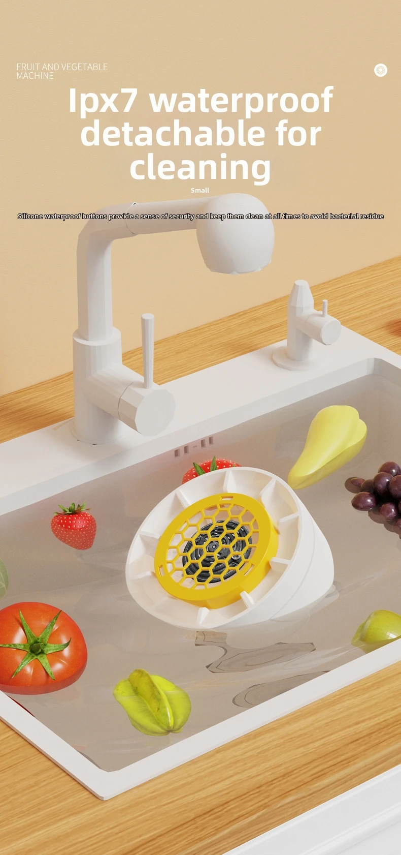 Using the food cleaner is incredibly simple. Just fill your sink with water, add your produce, attach the device to the sink with the suction cup, and press the power button. The machine will automatically purify your food in minutes, leaving you with impeccably clean and ready-to-eat ingredients. It’s perfect for busy individuals and families who prioritize health and convenience.