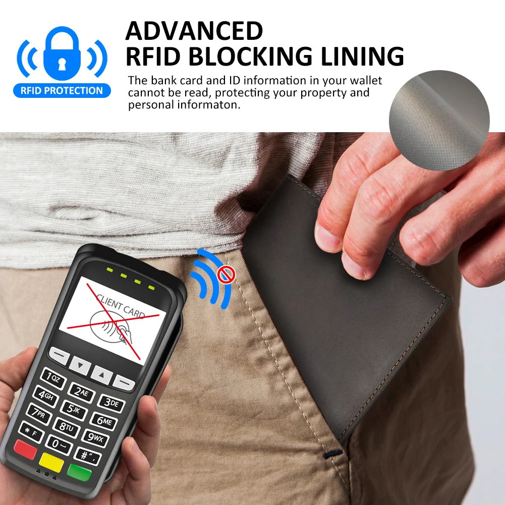 – Integrated RFID-blocking technology protects your credit cards from unauthorized scans and digital theft.