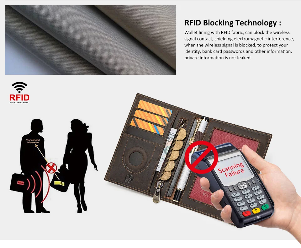 - RFID-blocking technology safeguards your credit cards and personal information from unauthorized scanning