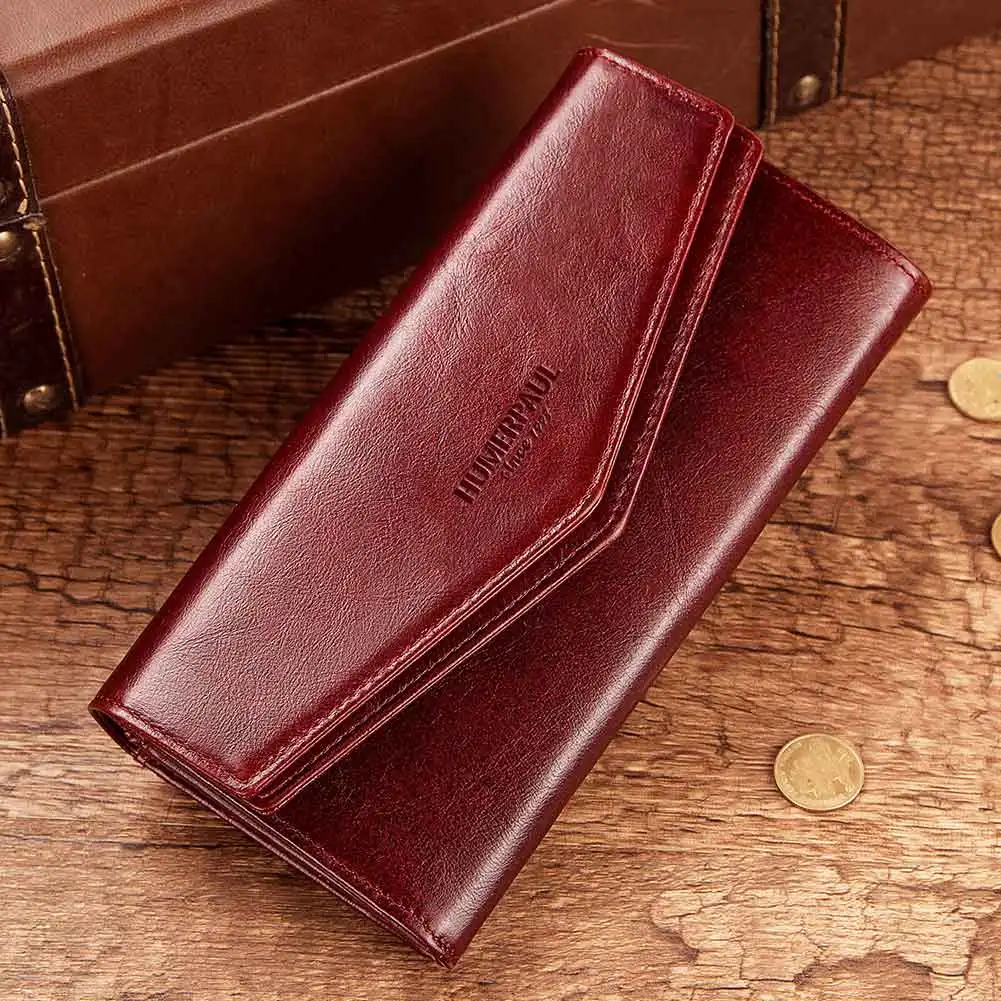 H1: HUMERPAUL Women's Wallet Top Layer Leather Long Cell Phone Bag with RFID Card Holder
