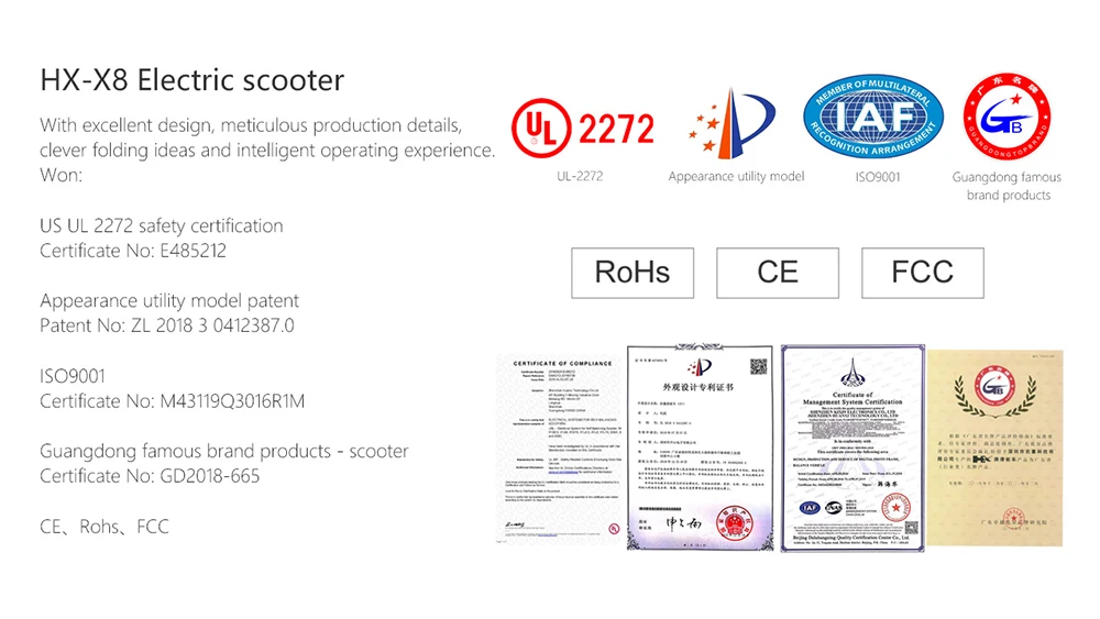 Constructed with high-quality materials, the HX X8 is built to withstand daily use while maintaining a lightweight design for portability. For optimal performance, it is recommended to charge the battery fully before use and store the scooter in a dry environment. Regular maintenance of tires and battery care will extend the scooter’s lifespan and ensure consistent safety.