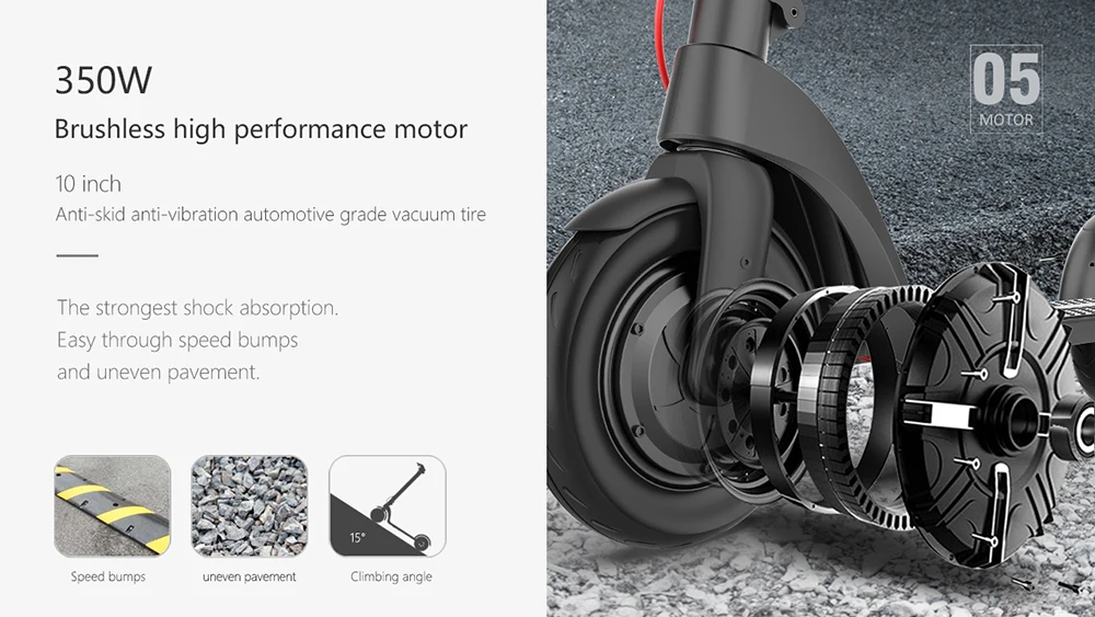 – Powerful 350 W motor delivering smooth acceleration and consistent speed.
