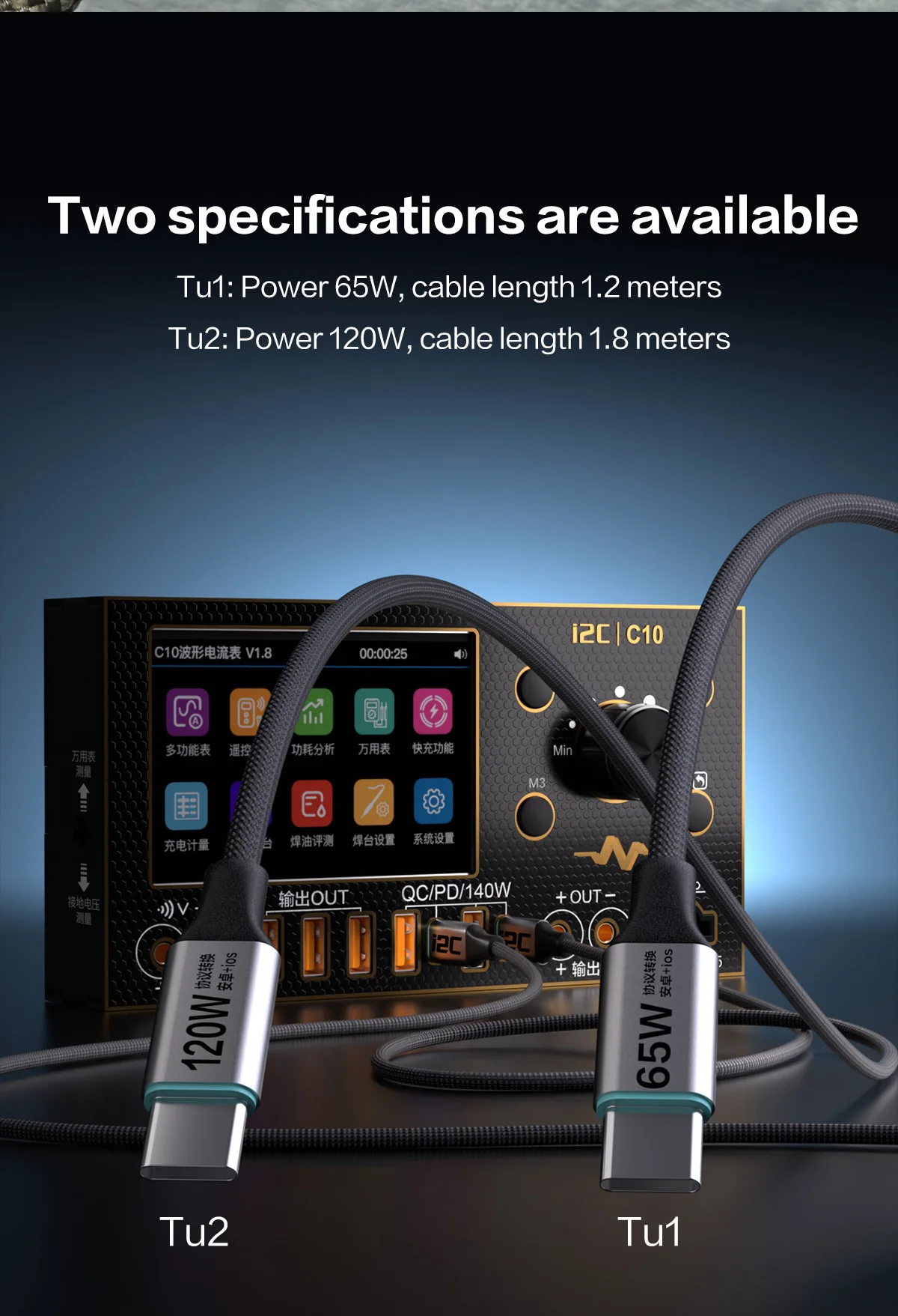 – Cable lengths of 1.2 meters and 1.8 meters to suit different needs