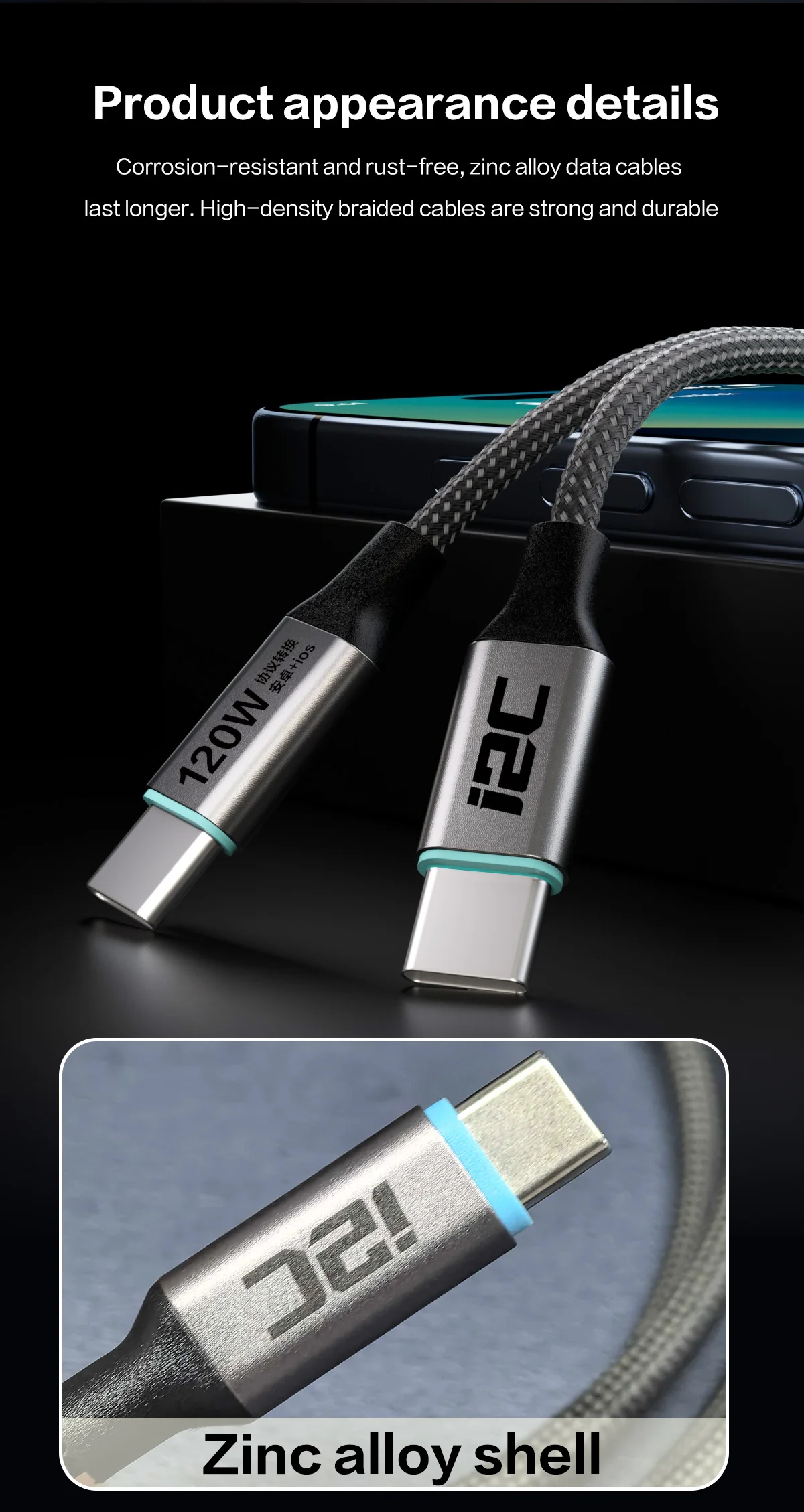 I2 C Turbo TU1 TU2 High Power Universal Flash Fast Charging Cable
