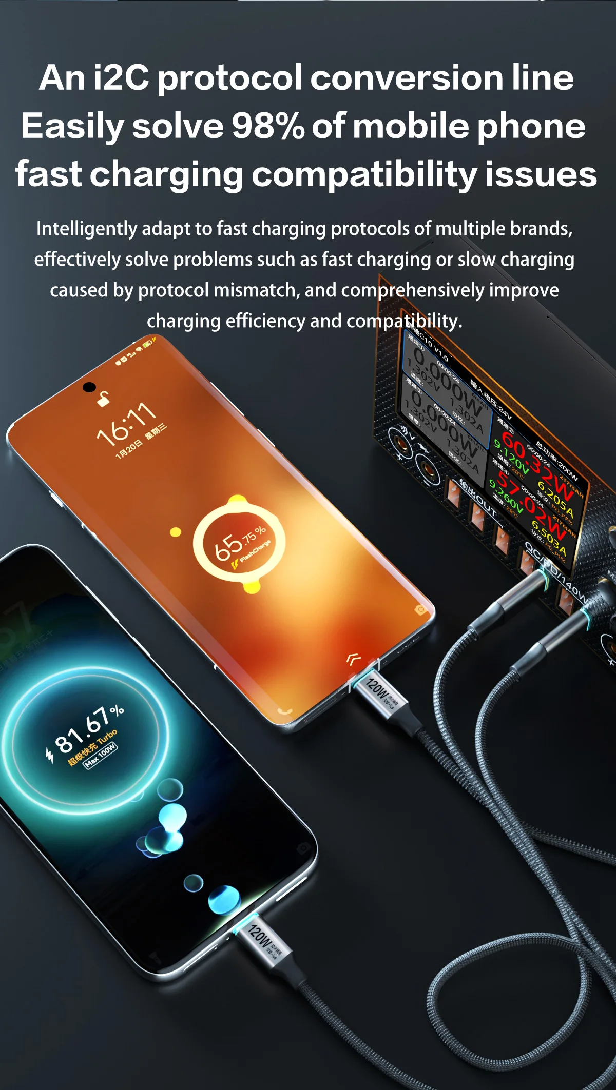 – High power capacity supporting 65W and 120W fast charging speeds
