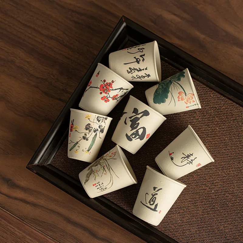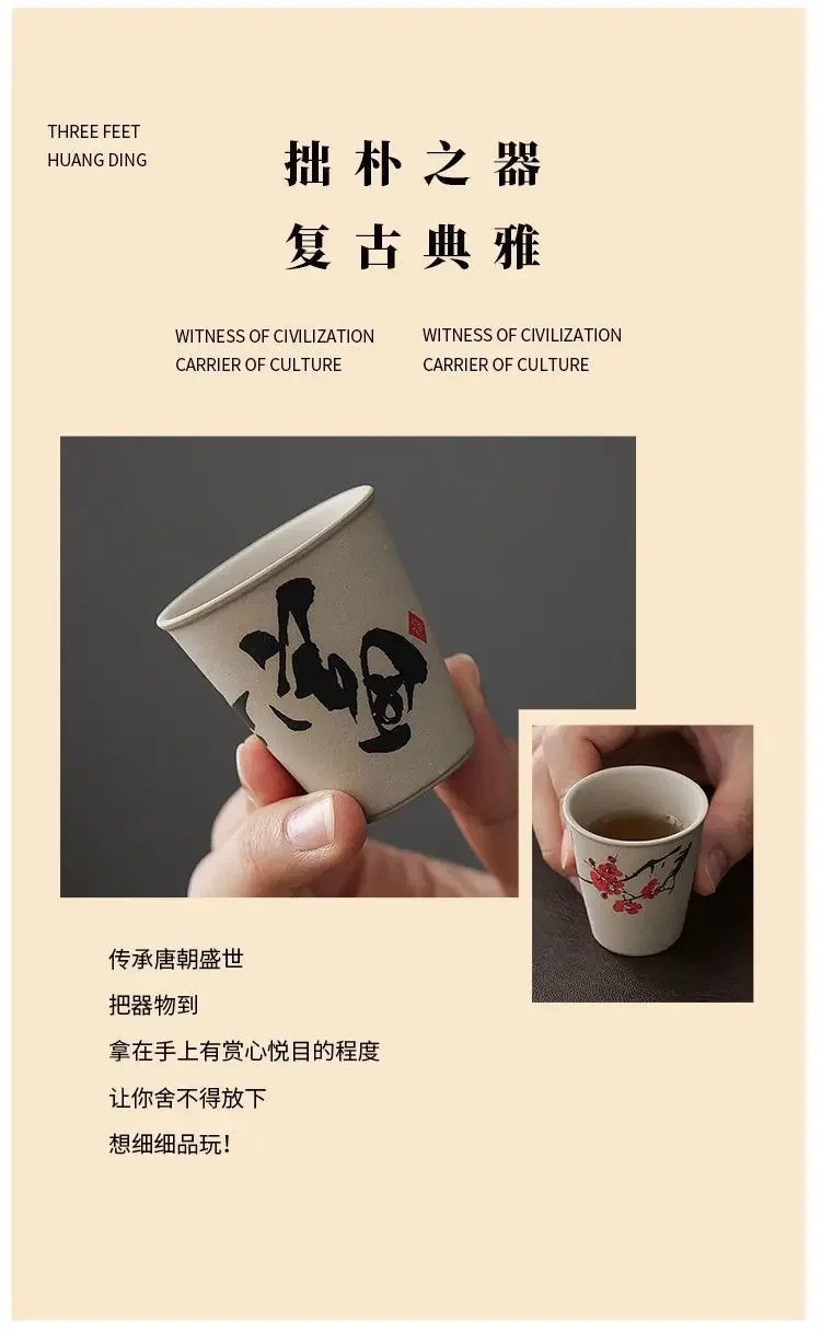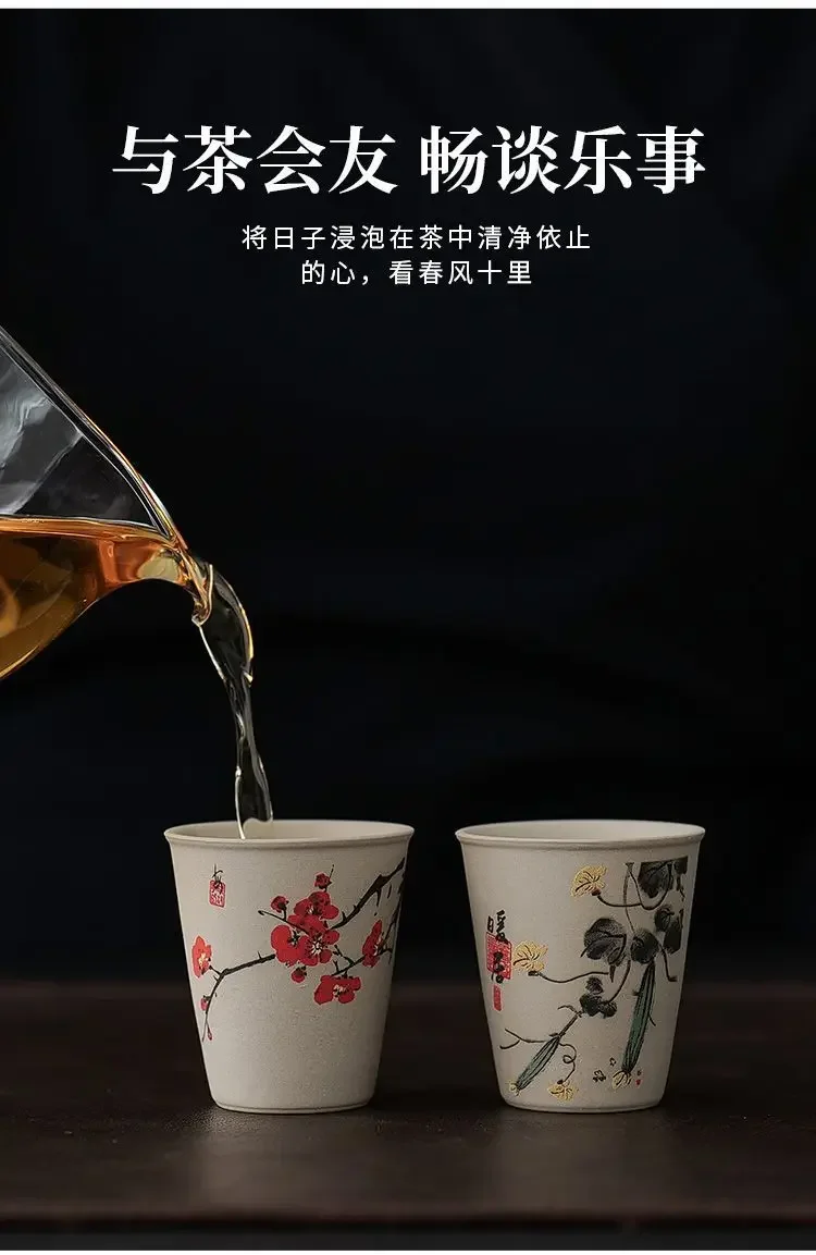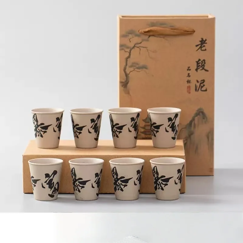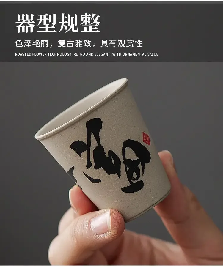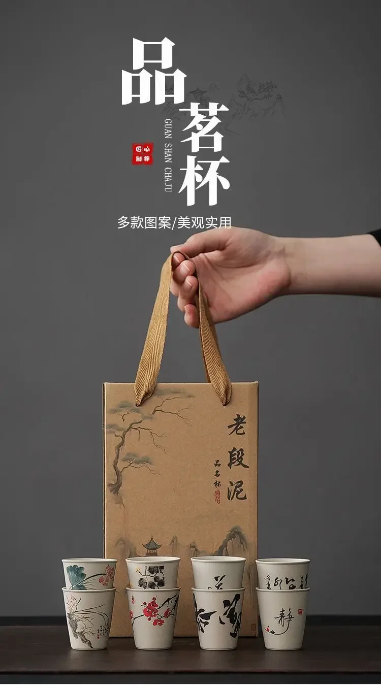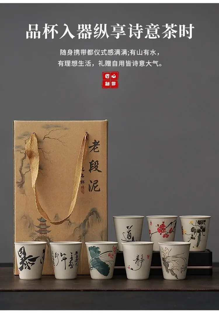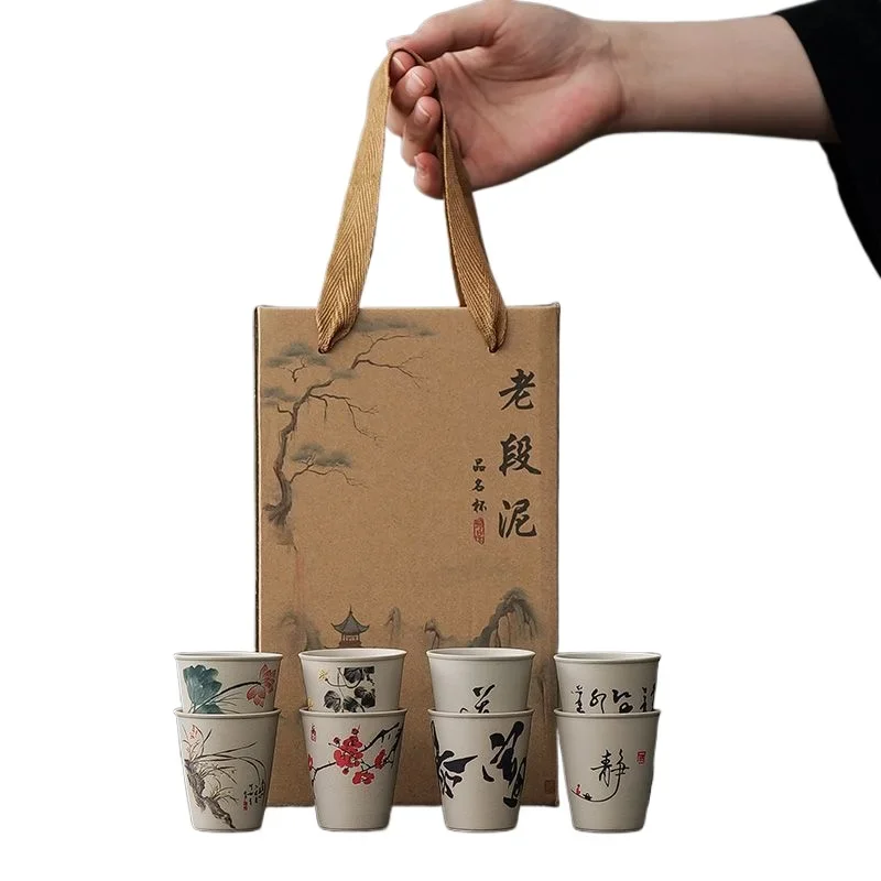 INS New Coarse Ceramic Teacup Chinese High Price Teacup Exquisite Ancient Teacup Personalized Eight Gift Box Set