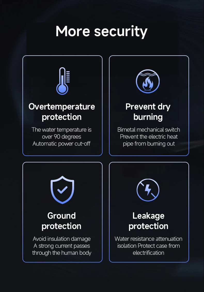 – Energy Efficient: Heats only the water you need, when you need it, saving energy.