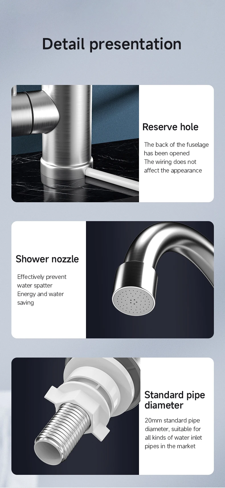 Transform your daily routines with the instant availability of hot water. Wash dishes without the chill, enjoy a quick hand wash with comforting warmth, or even speed up your laundry pre-treatment. This tankless heater is ideal for busy households, small apartments, workshops, or any area where a dedicated hot water supply is a luxury. Its intuitive design makes installation straightforward, and its efficient operation means lower energy bills. Forget about the prolonged heating times of conventional systems; with this faucet, hot water is just a turn away, enhancing your comfort and productivity.