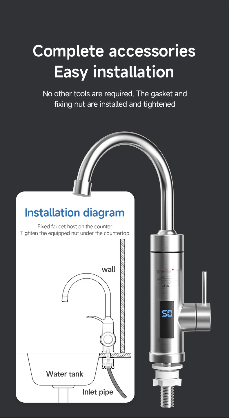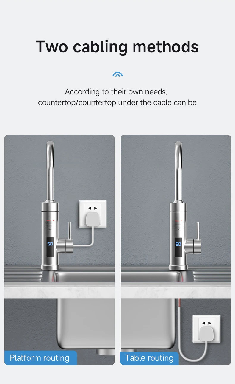 Experience unparalleled convenience and efficiency with our Instant Hot Water Heater Faucet. Designed for modern living, this innovative tankless water heater delivers hot water on demand directly from your tap, eliminating the need for traditional bulky water heaters. Perfect for kitchens, bathrooms, and any location requiring immediate hot water access, it’s the smart solution for saving time, energy, and space.