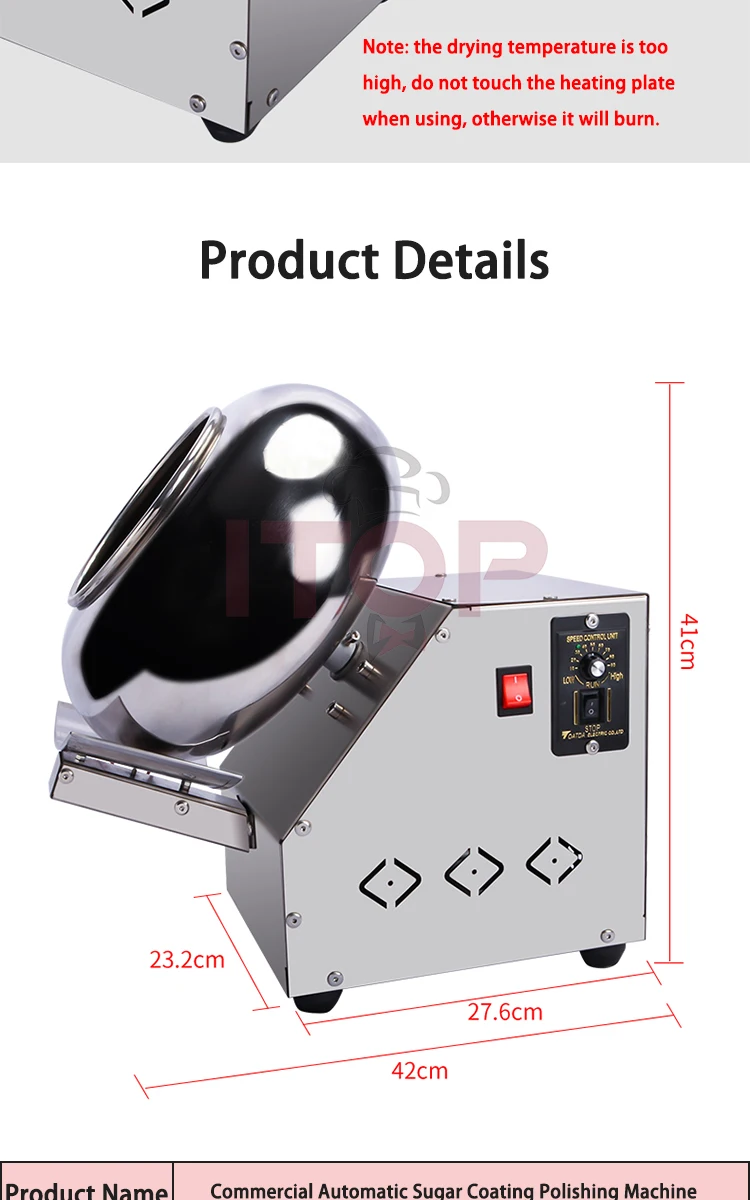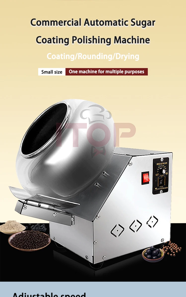 Crafted with quality materials, the ITOP Chocolate Sugar Coating Machine is built for reliability. Its robust design ensures it can handle the demands of frequent use, making it a sound investment for any serious confectioner. Maintenance is straightforward, allowing for quick clean-up between batches and ensuring hygienic production. Ships directly from CHINA, bringing professional confectionery technology to your doorstep.