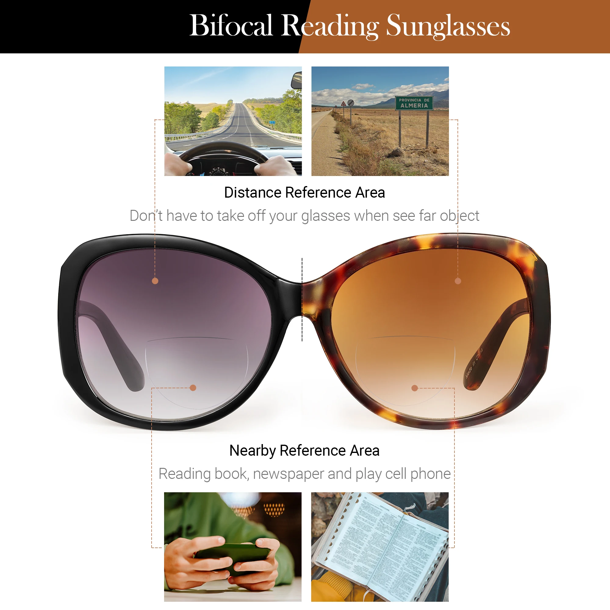 These bifocal reading sunglasses are ideal for women who love spending time outdoors but still need reliable reading glasses. Whether you’re enjoying a sunny day at the park, driving, or browsing your favorite book or mobile device, these sunglasses reduce eye strain and provide crystal-clear vision. The oversized frames offer excellent sun coverage, reducing glare and enhancing visual comfort. Their stylish design makes them perfect for casual outings or fashionable events, offering both protection and elegance.