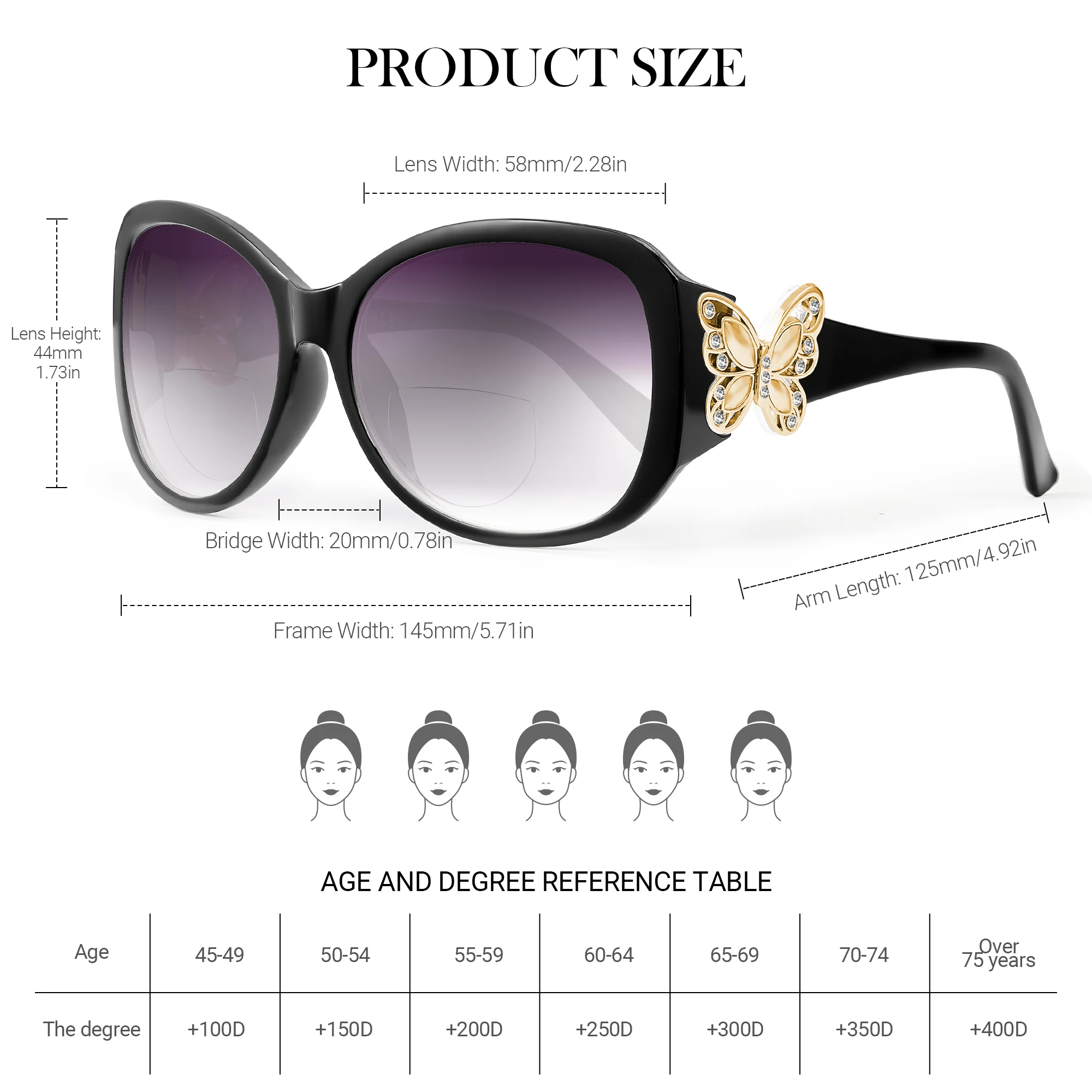 – Multiple eye prescriptions ranging from +100 to +350, including +225, +250, +300, +350, +100, +150, +175, and +200 to suit individual vision needs.