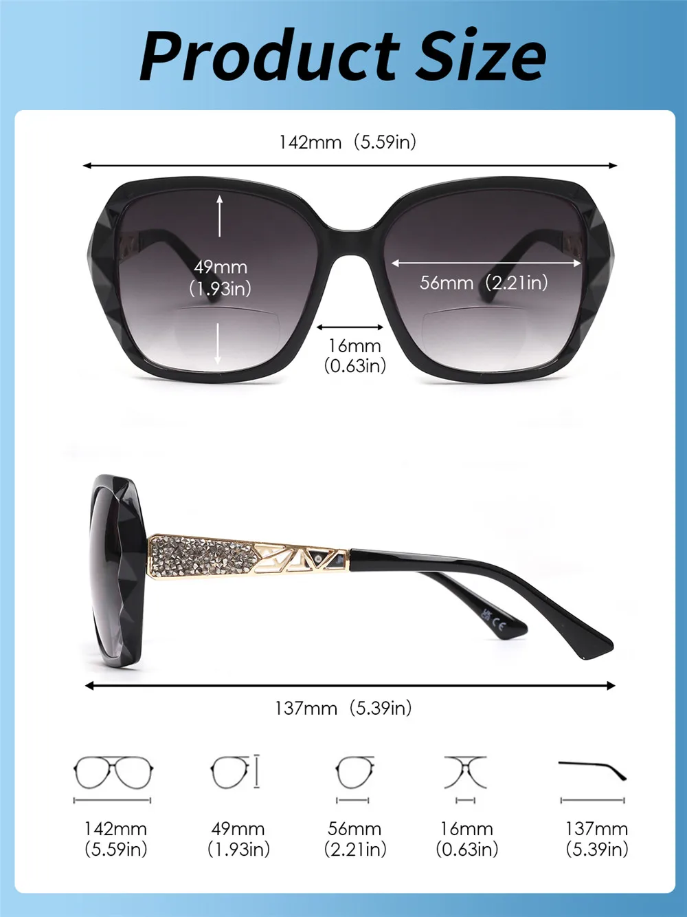 Experience the convenience of reading glasses integrated into stylish sunglasses, eliminating the need to switch between different eyewear. The bifocal lenses allow you to see nearby objects clearly, ideal for reading menus, smartphones, or fine print while on the go. The oversized frame not only offers a fashion-forward look but also provides excellent sun protection, making these sunglasses perfect for outdoor activities, driving, or casual wear. Protect your eyes from harmful UV rays while maintaining crystal-clear vision and a polished appearance.