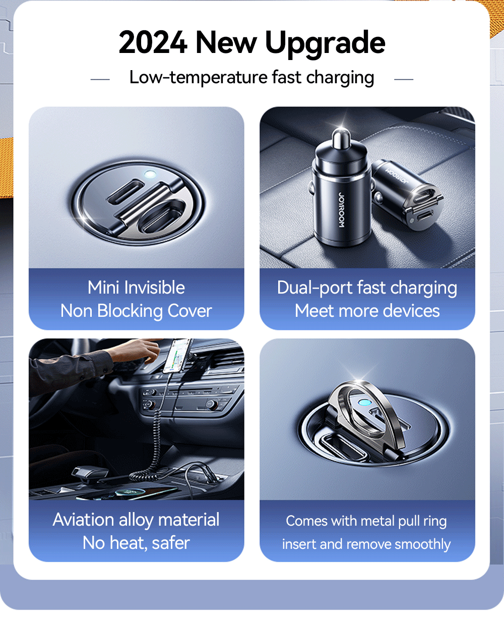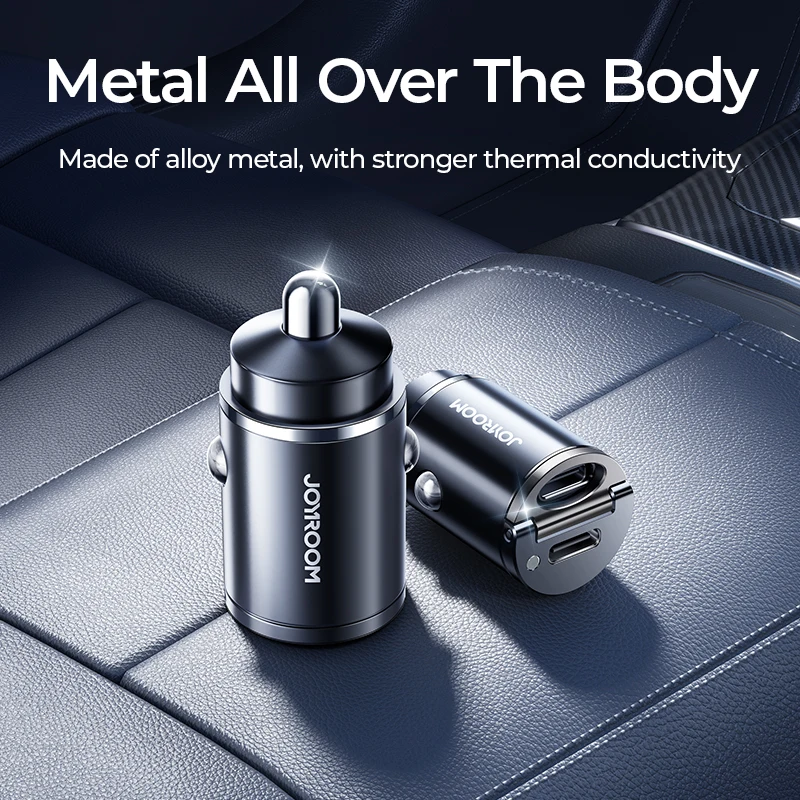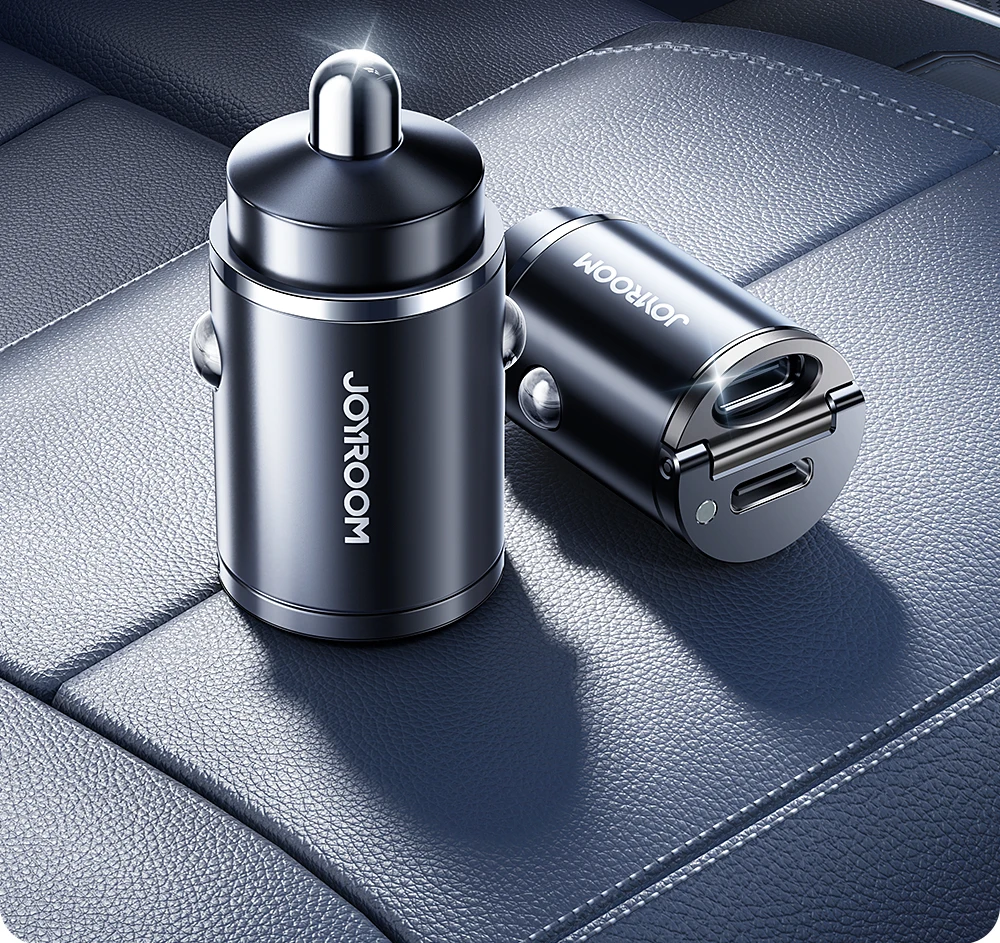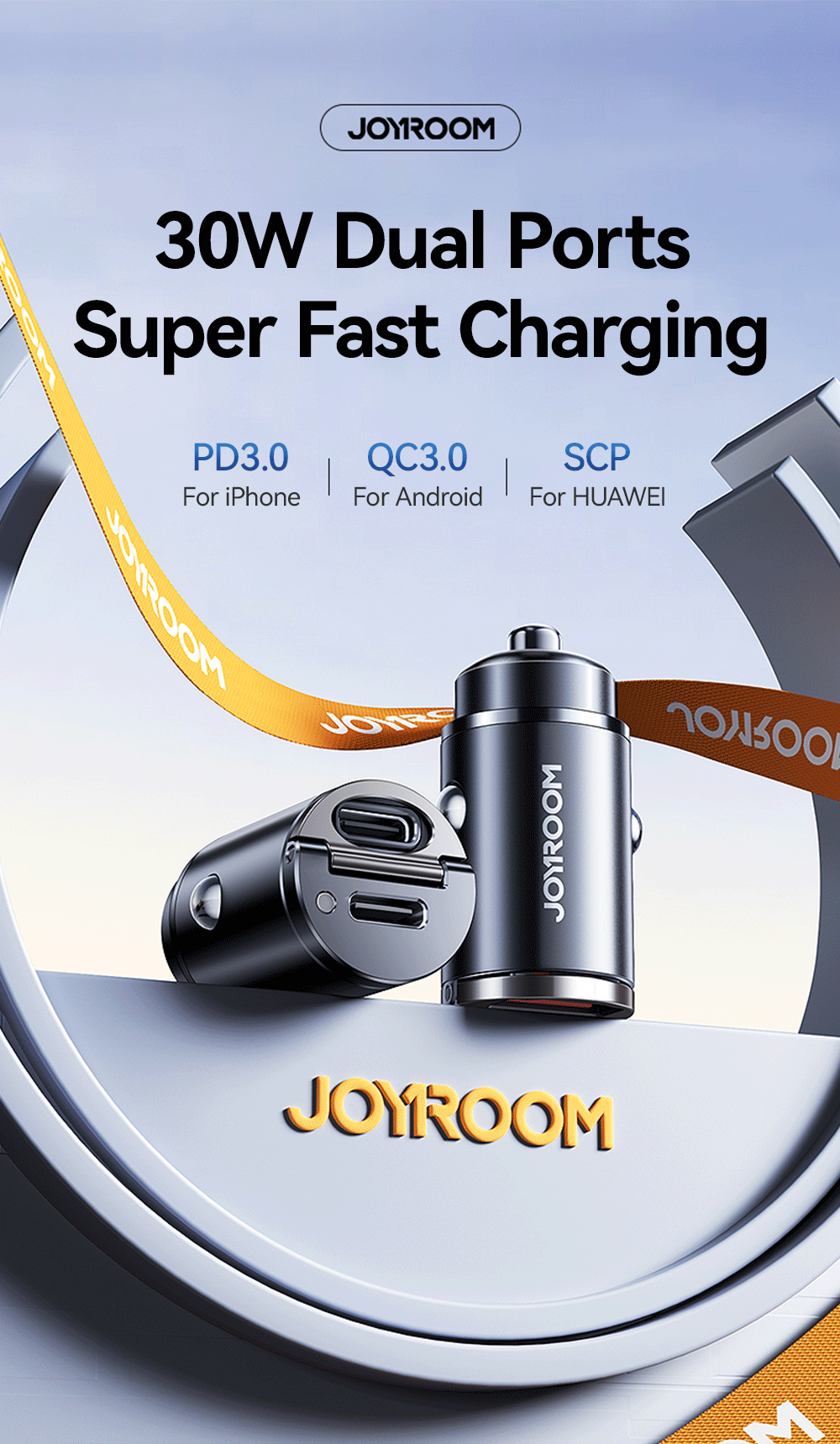 Charge faster on the go with the Joyroom 30W Pull Ring Car Charger. Features dual USB-C and USB ports with PD & QC fast charging. Compact design for ultimate convenience.