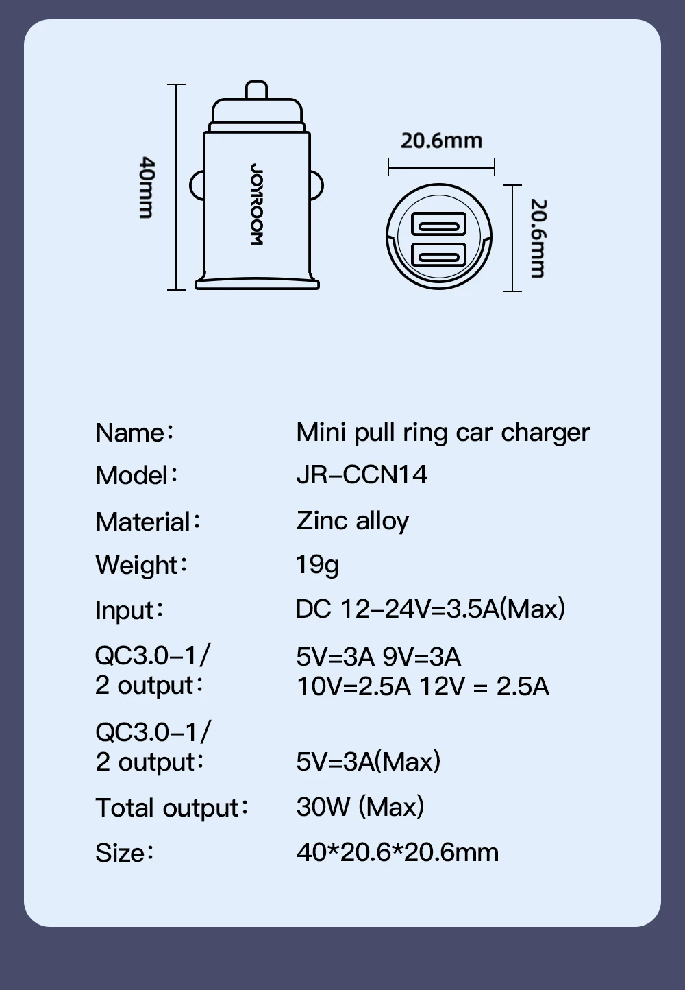 S8fc2651836e742158122ab4b6564443aw 1.webpJoyroom 30W Pull Ring Car Charger USB Type-C Dual Fast Ports Fast Charging Mini Car Phone Charger Adapter Car Accessories PD QC