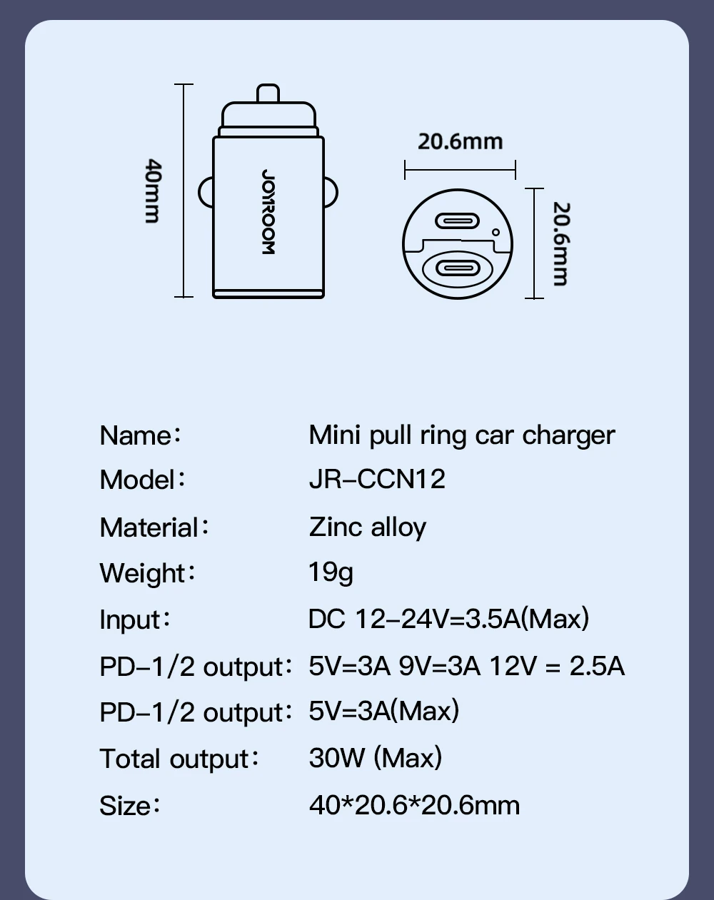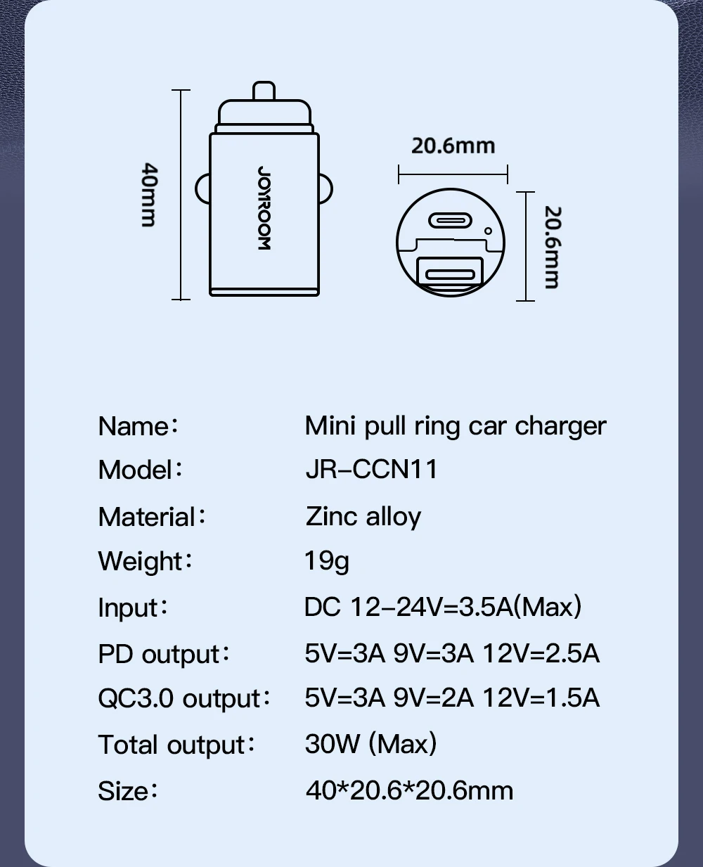 This product ships from CHINA and is categorized under Automotive car accessories. Embrace convenience and efficiency with the Joyroom 30W Pull Ring Car Charger – the smart choice for staying powered on the road.