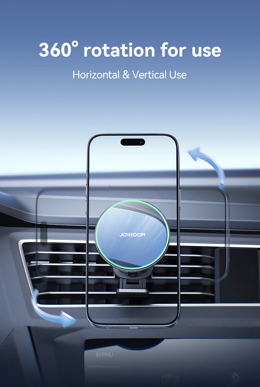 The Joyroom Qi2 Wireless Fast Charger Car Mount streamlines your in-car experience by combining charging and phone mounting into one efficient device. Simply attach the holder to your preferred location—air vent or dashboard—and place your iPhone into the mount to initiate fast wireless charging automatically. This setup reduces cable clutter and keeps your phone visible for navigation, calls, or music control without compromising safety. Designed for everyday use, it enhances convenience on commutes, road trips, or professional travel, allowing you to stay connected and powered up effortlessly.