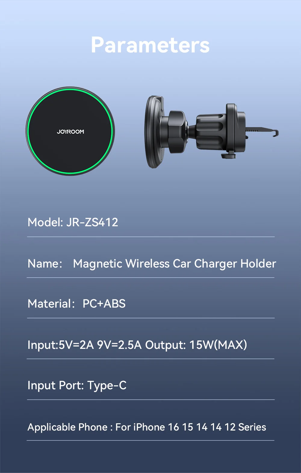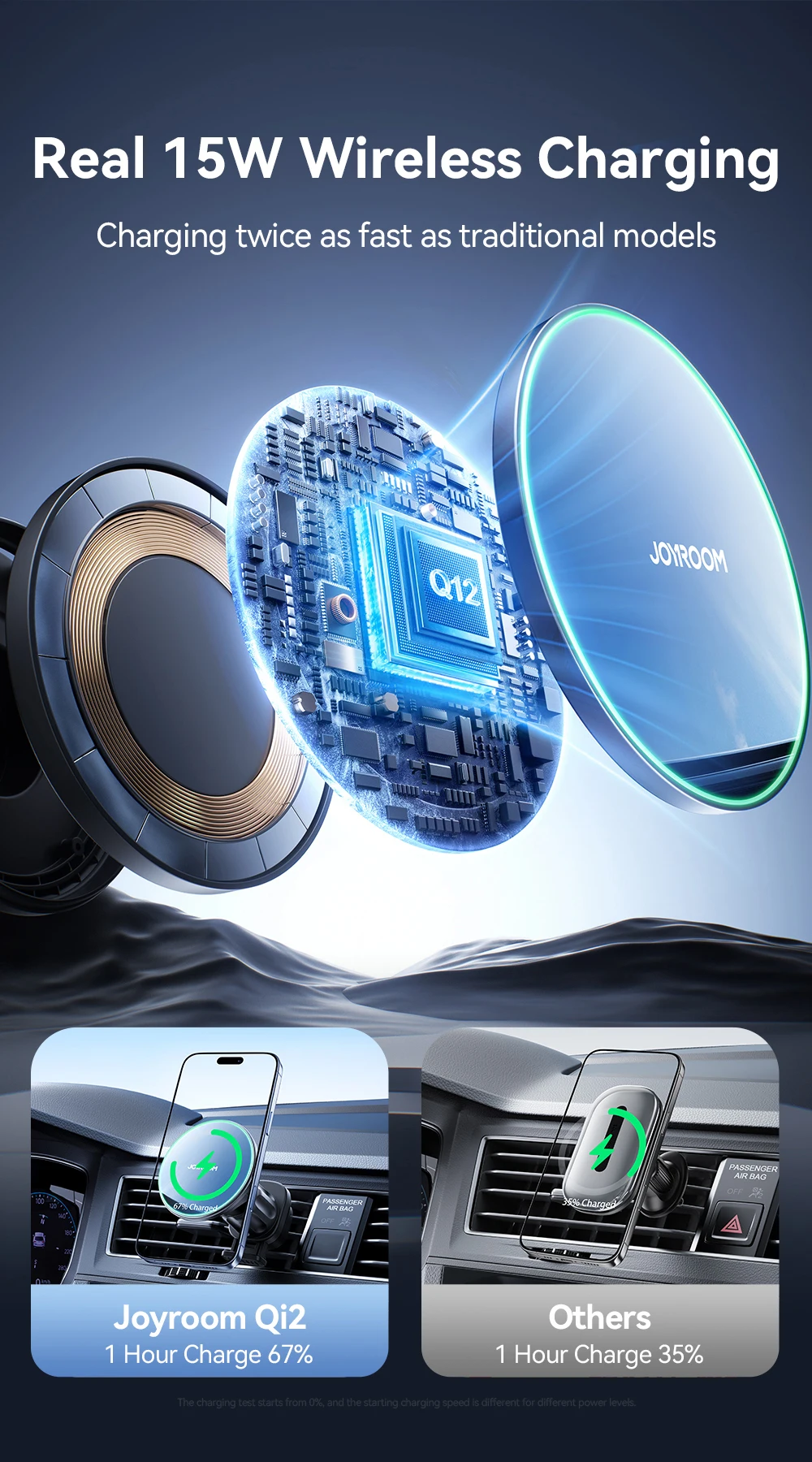 Joyroom Qi2 15 W Wireless Fast Charger Car Mount for iPhone 16 15 14 13 Pro Max