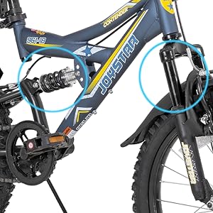 This mountain bike empowers children to build confidence, improve balance, and develop cycling skills in a fun and engaging way. Its dual suspension system makes it suitable for various terrains, from neighborhood streets to off-road trails, promoting outdoor activity and healthy habits. The ergonomic design allows young riders to maintain proper posture, reducing fatigue and encouraging longer rides. Whether for casual weekend fun or active sports recreation, this bike is a versatile choice that grows with your child.
