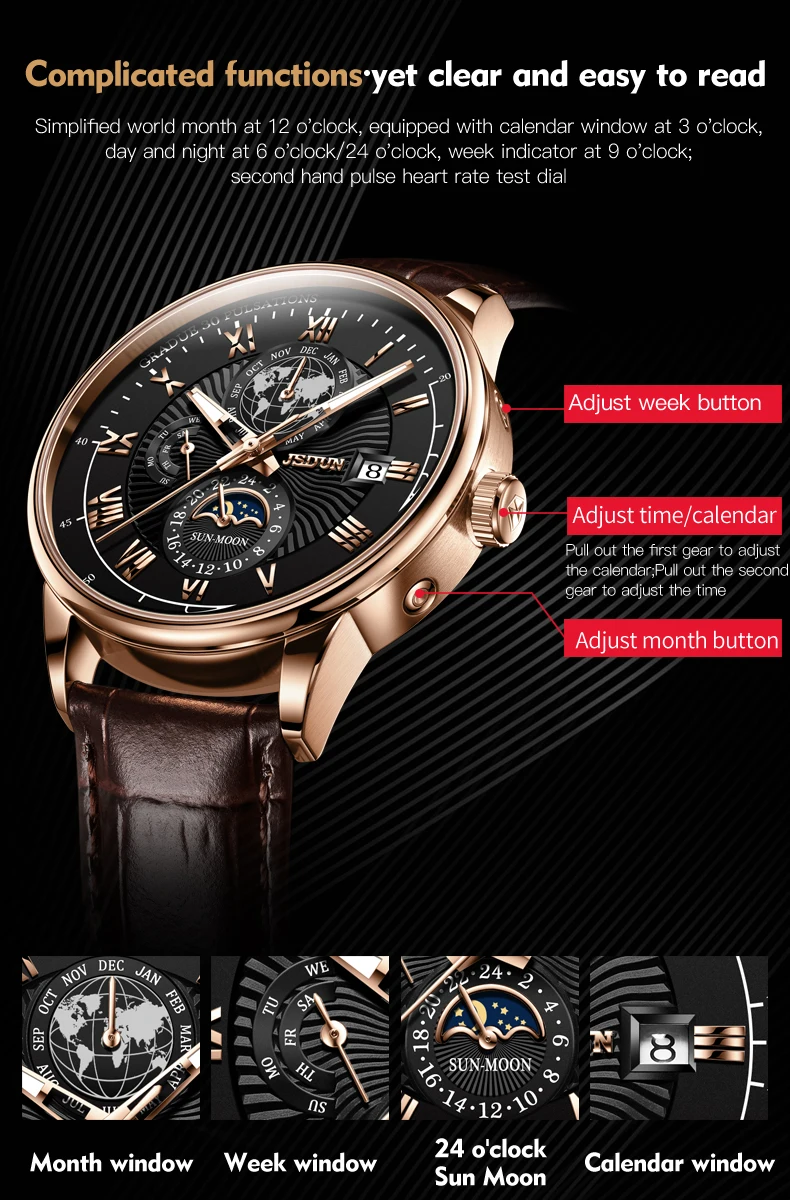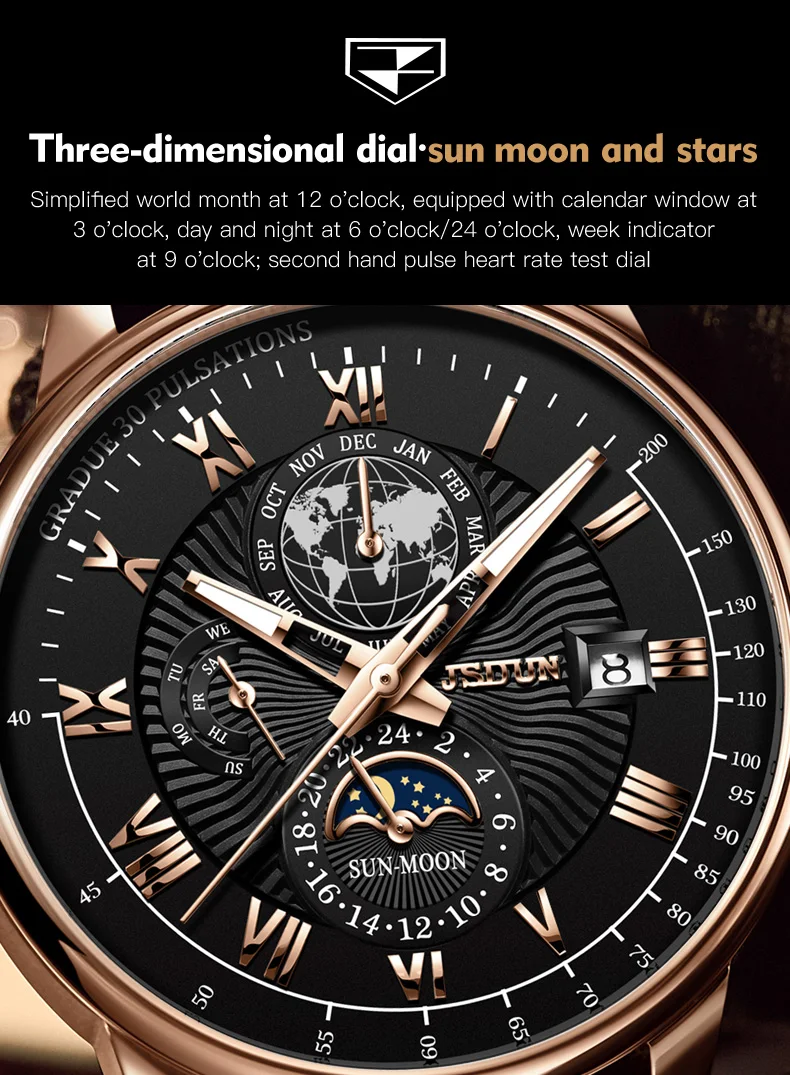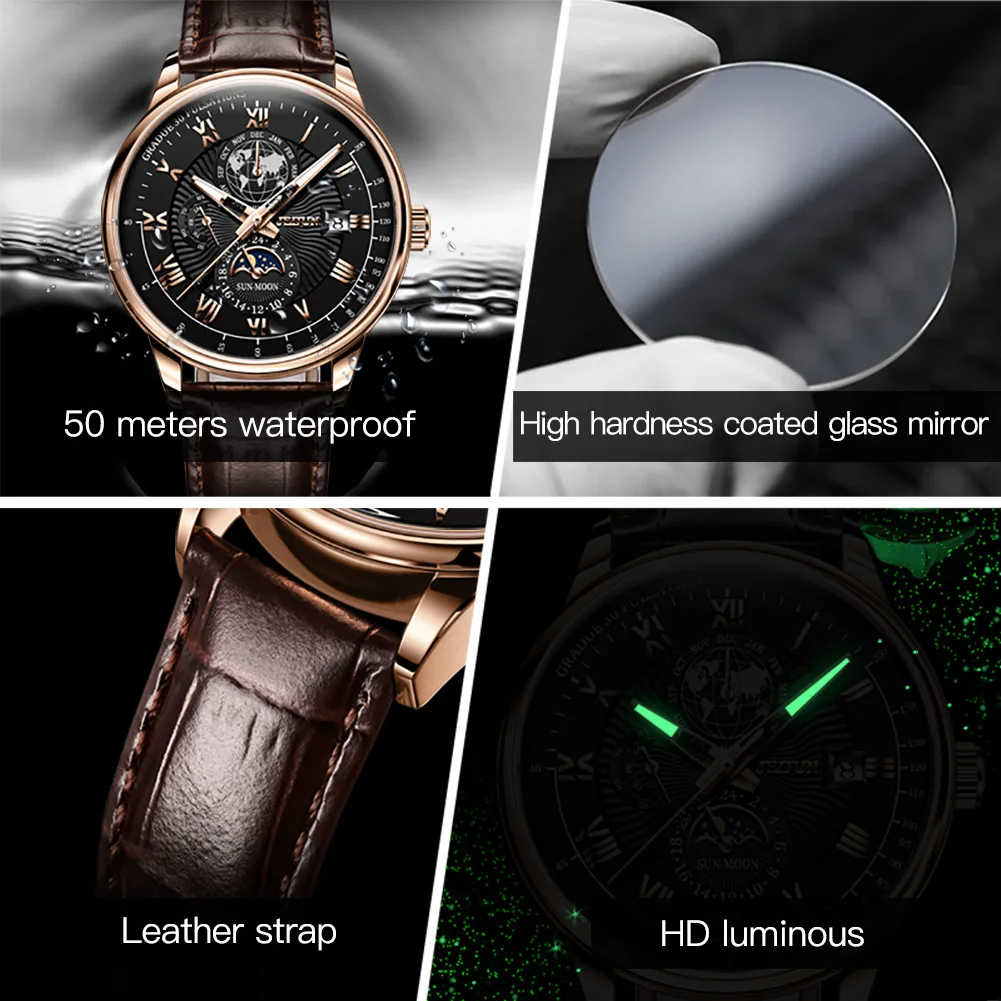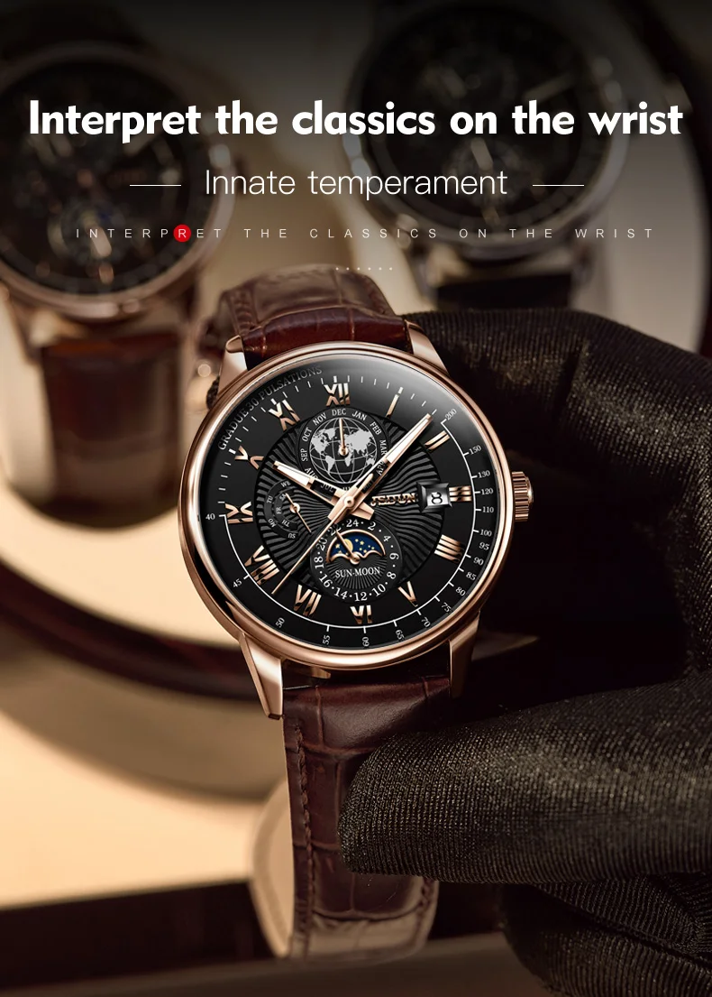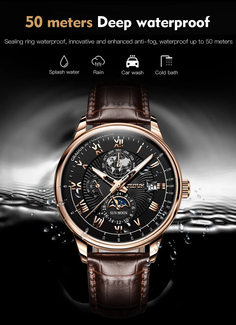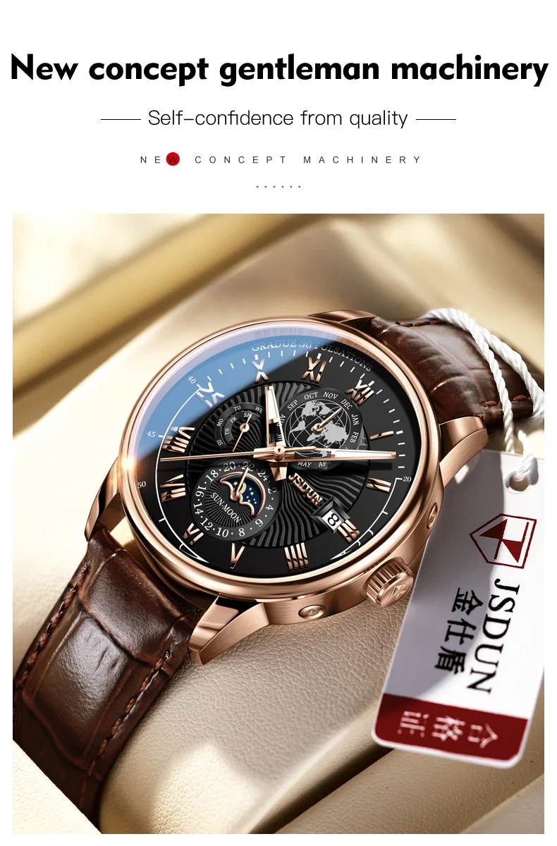 Wearing the JSDUN 8909 instantly elevates your personal style, projecting an aura of confidence and refined taste. This watch is engineered not just to tell time, but to make a lasting impression. Its intricate design and luxurious feel make it an ideal accessory for important business meetings, elegant evening events, or as a distinguished everyday companion. It serves as a perfect gift for anniversaries, birthdays, or any special occasion, symbolizing appreciation and lasting value. Experience the blend of traditional watchmaking artistry with contemporary design that truly sets you apart, ensuring you always make a distinguished statement.