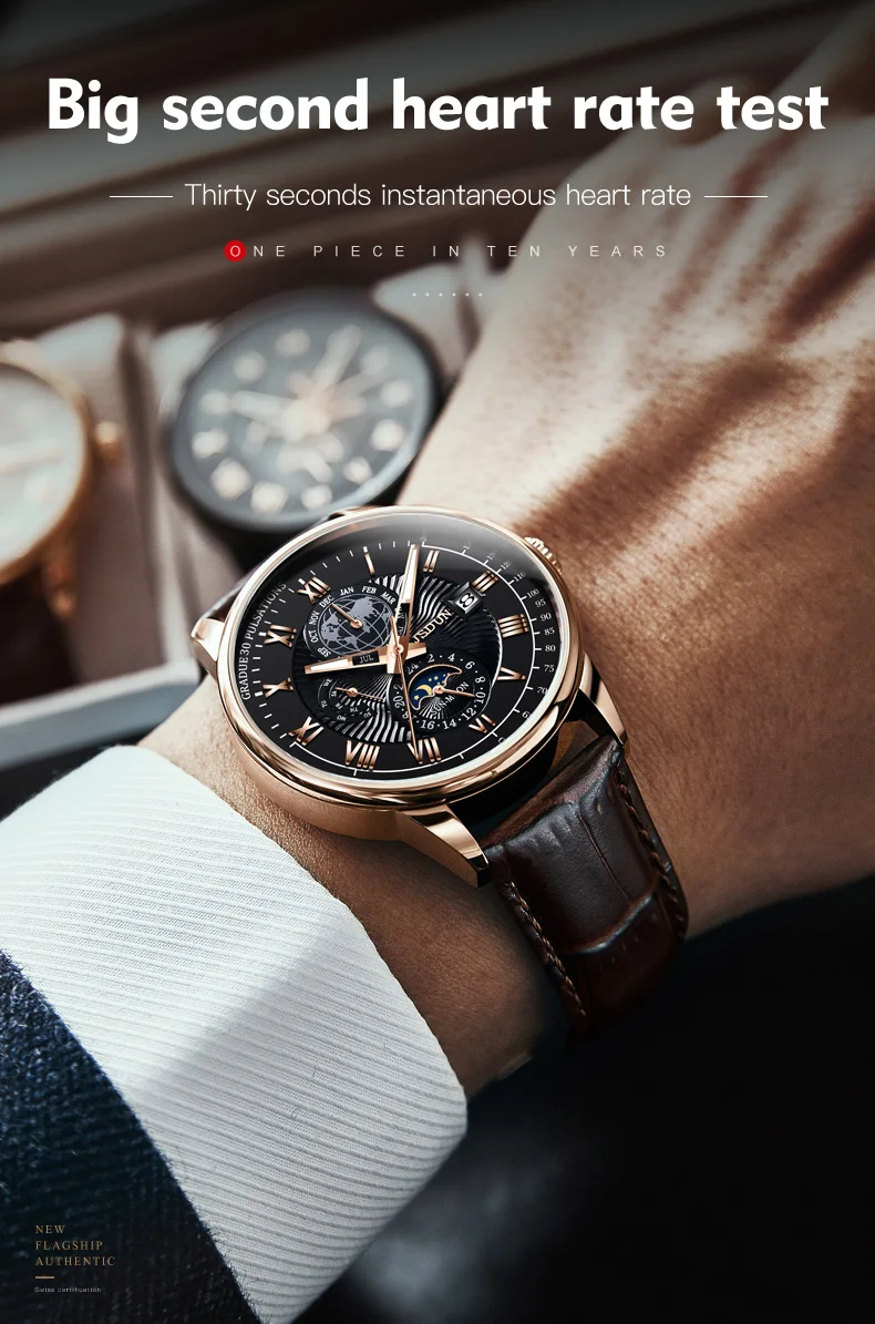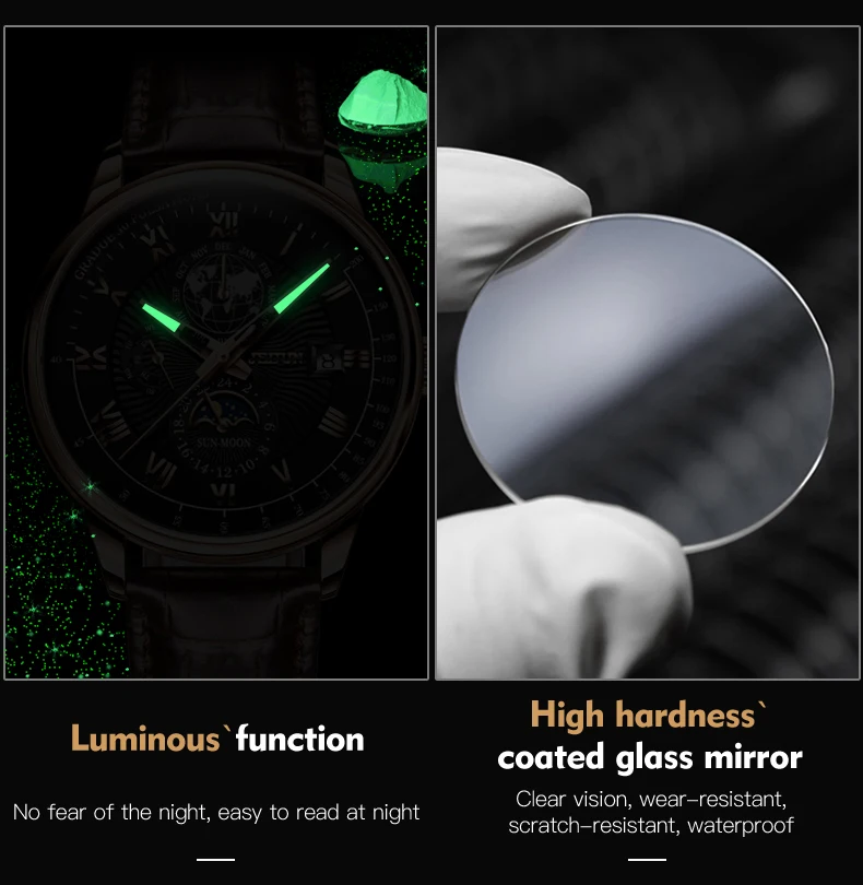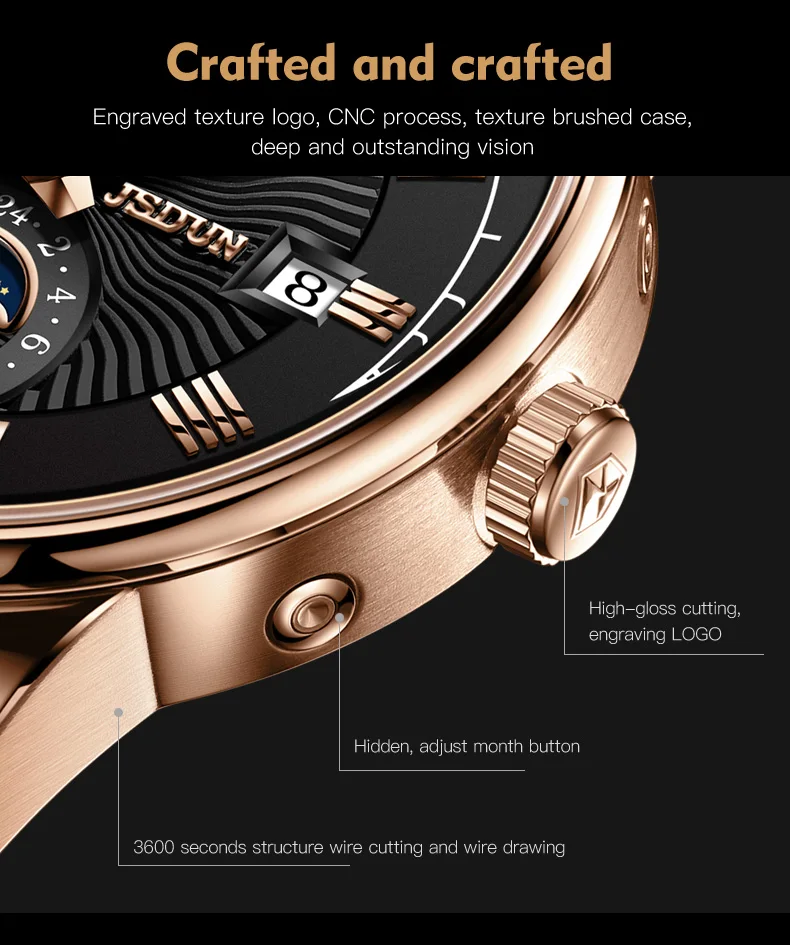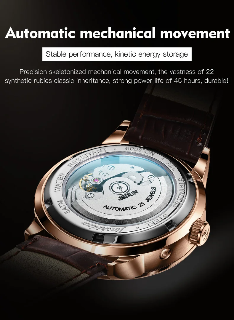 The JSDUN 8909 is meticulously crafted to deliver both impeccable performance and a captivating aesthetic. Its robust automatic mechanical movement ensures reliable timekeeping without the need for batteries, powered simply by the motion of your arm. This self-winding mechanism is a hallmark of traditional watchmaking, offering a connection to horological heritage.